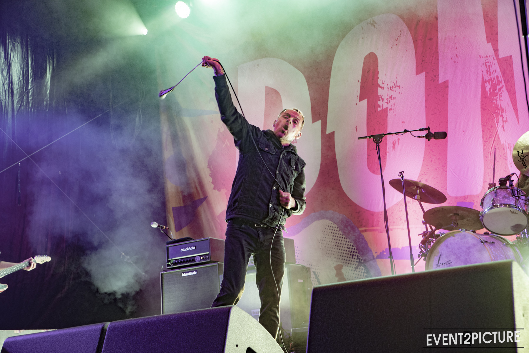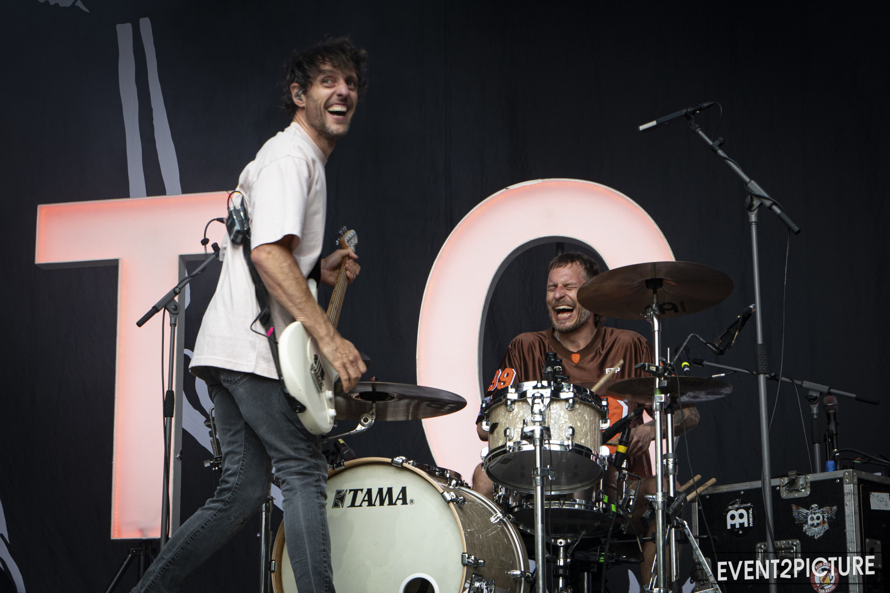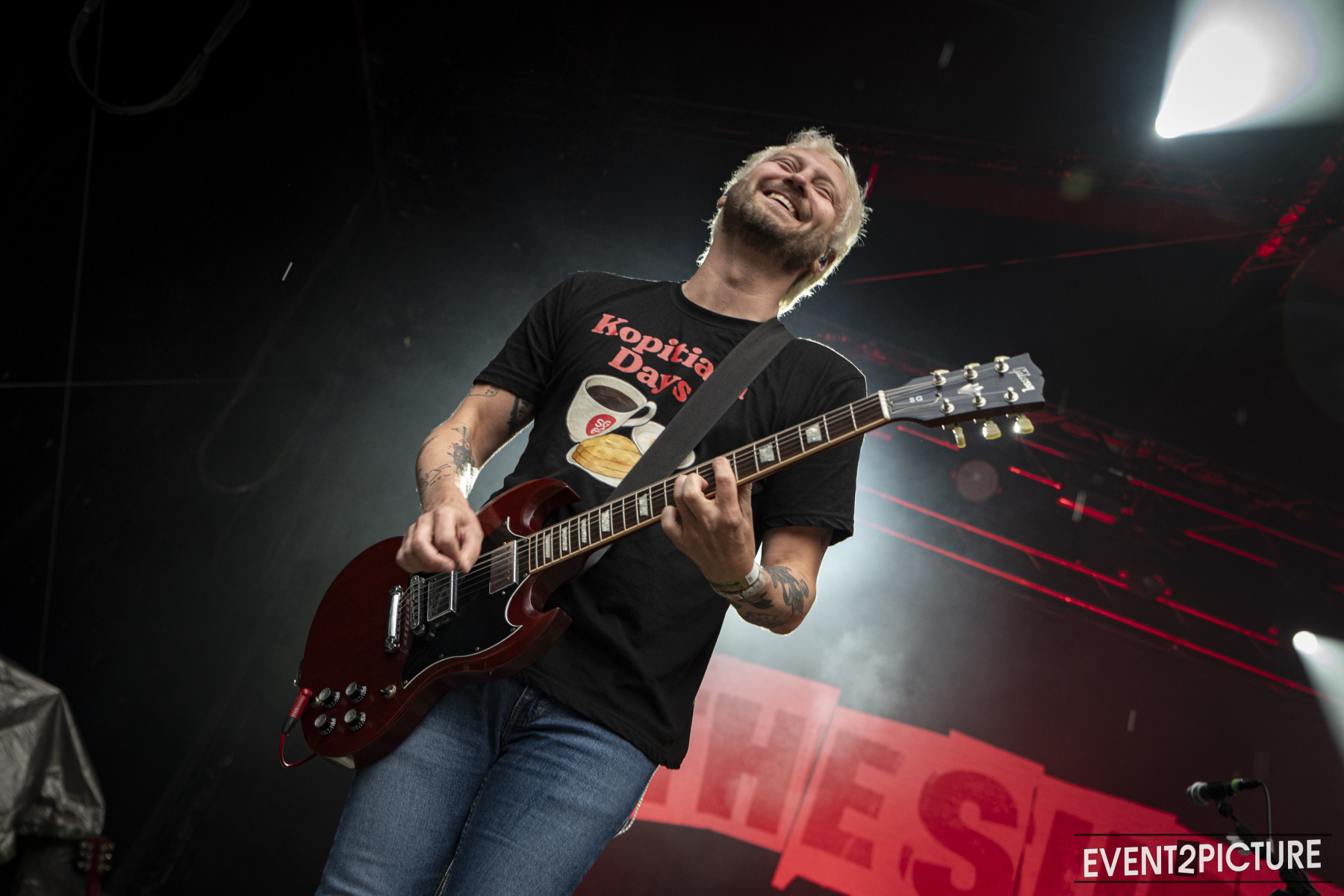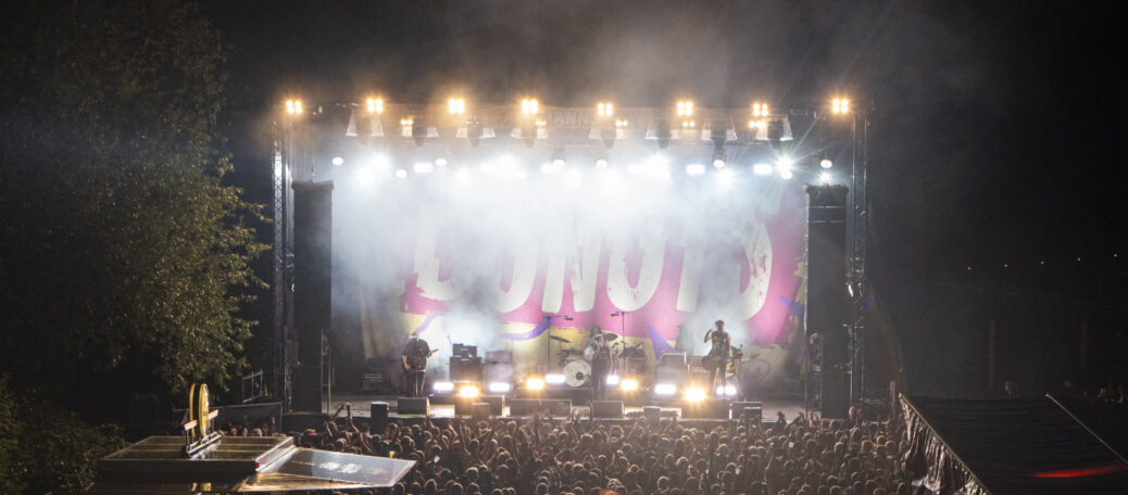 Als der Regen langsam in ein feines Nieseln übergeht, betreten die Donots um 21:30 Uhr die Bühne. Von der ersten Sekunde an ist klar: Dieser Auftritt ist nicht nur ein Abschluss des Tages, sondern ein Höhepunkt des gesamten Wochenendes.