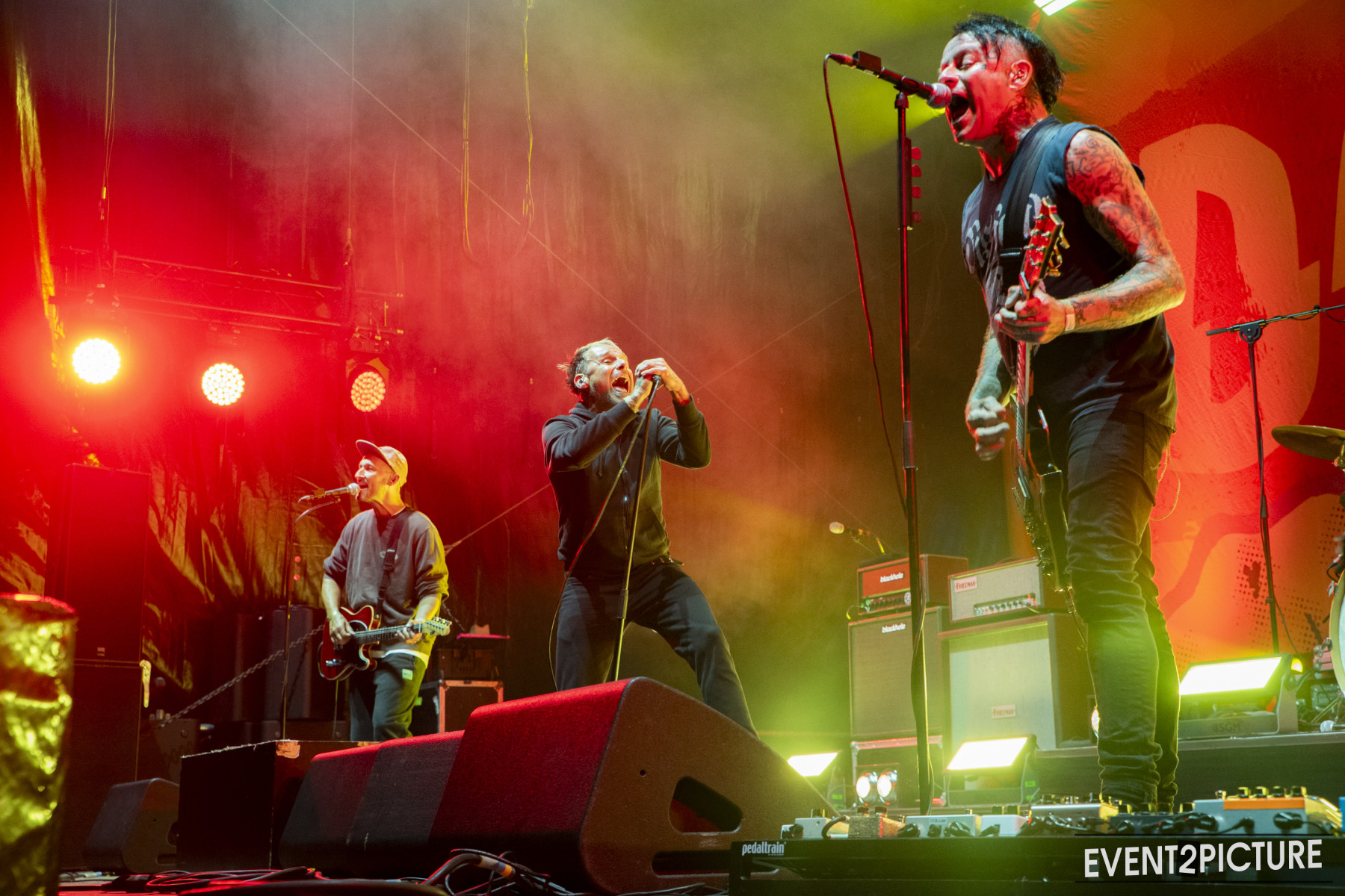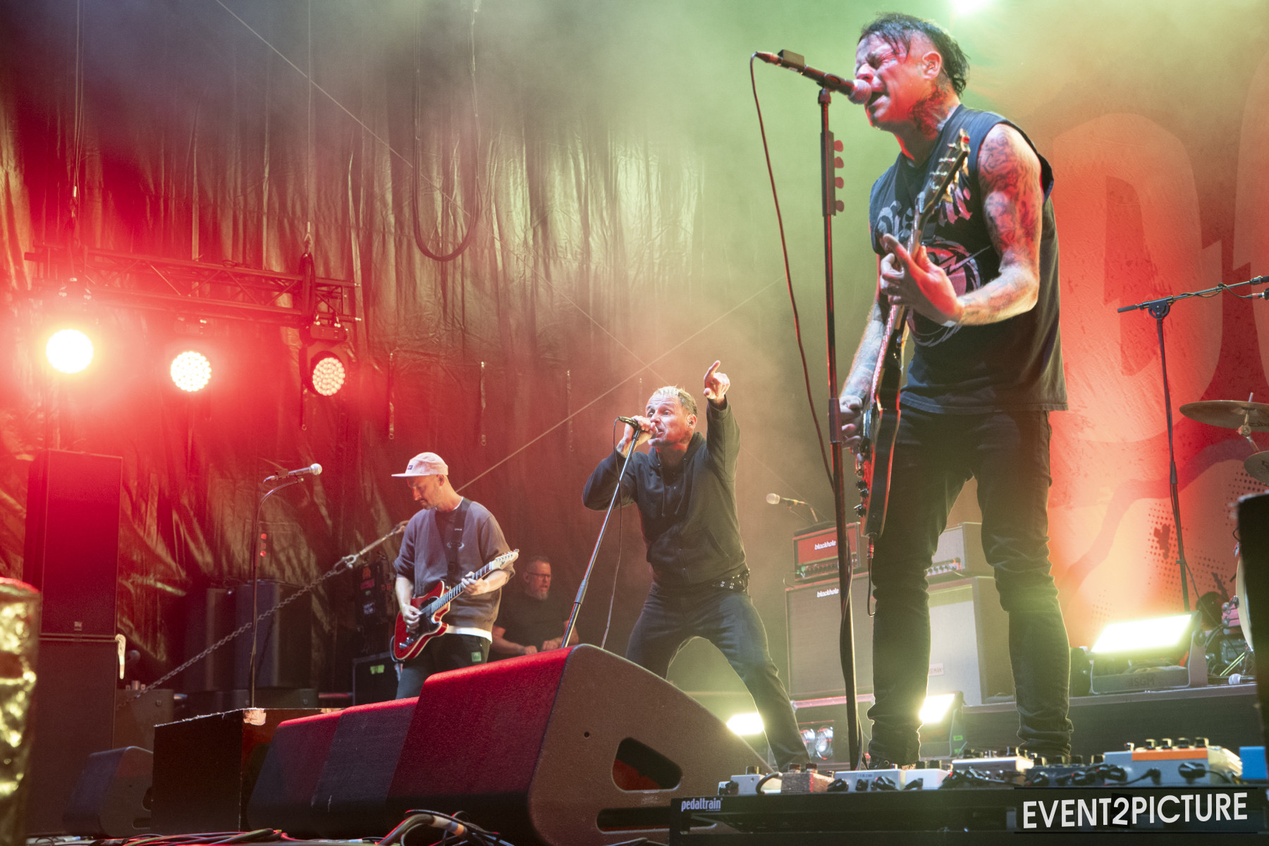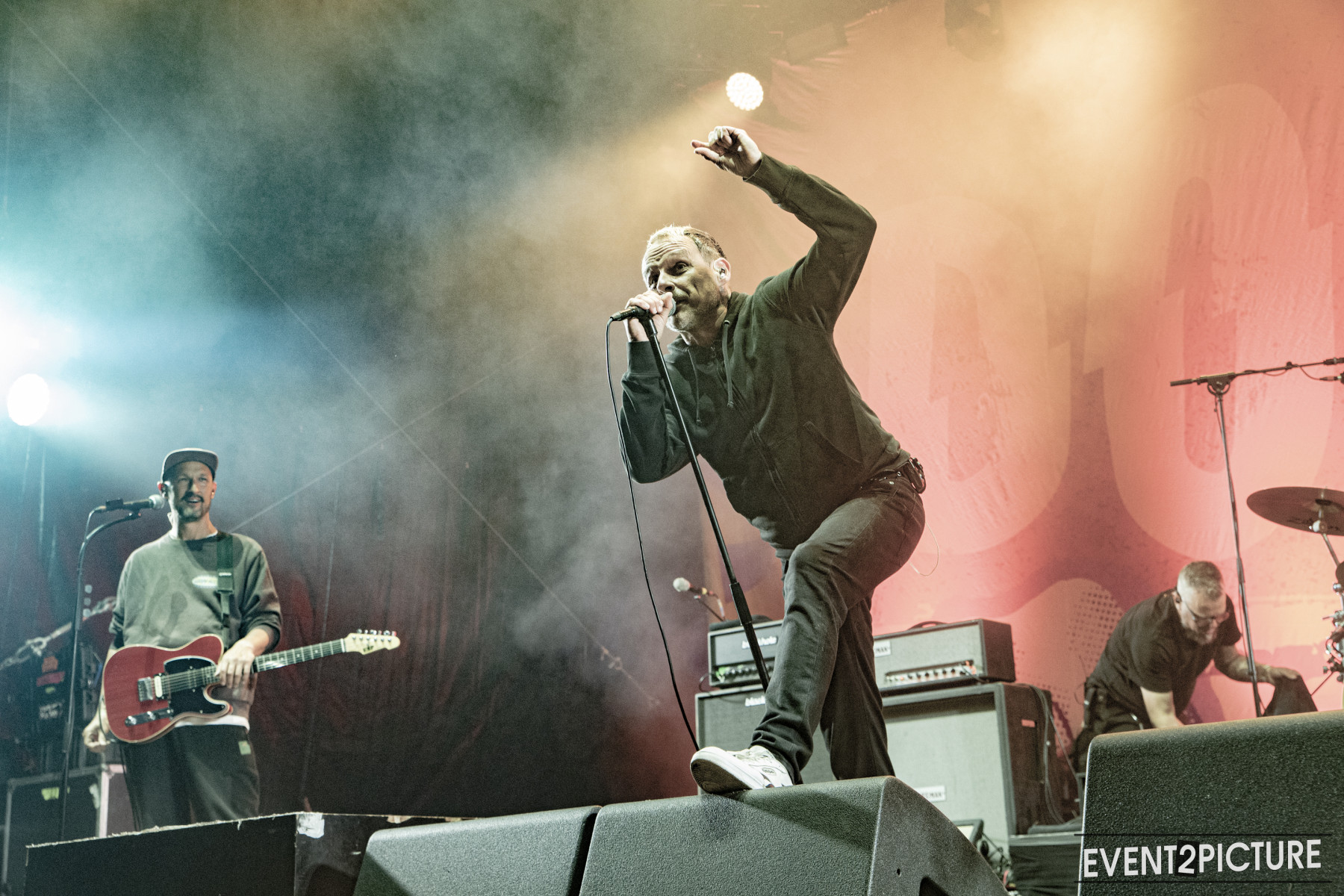 Besonderes Augenmerk liegt an diesem Tag auf Slime. Mit Tex Brasket als Sänger seit 2021 hat die Band eine Stimme gefunden, die sowohl die bekannten Klassiker wie „Alle gegen alle“ als auch neue Stücke vom aktuellen, 13. Album prägnant interpretiert. „Armes Deutschland“ und andere neue Titel gewinnen durch seine persönliche Geschichte zusätzlich an Gewicht. Das Zusammenspiel von altbekanntem Material und neuem Repertoire funktioniert nahtlos.