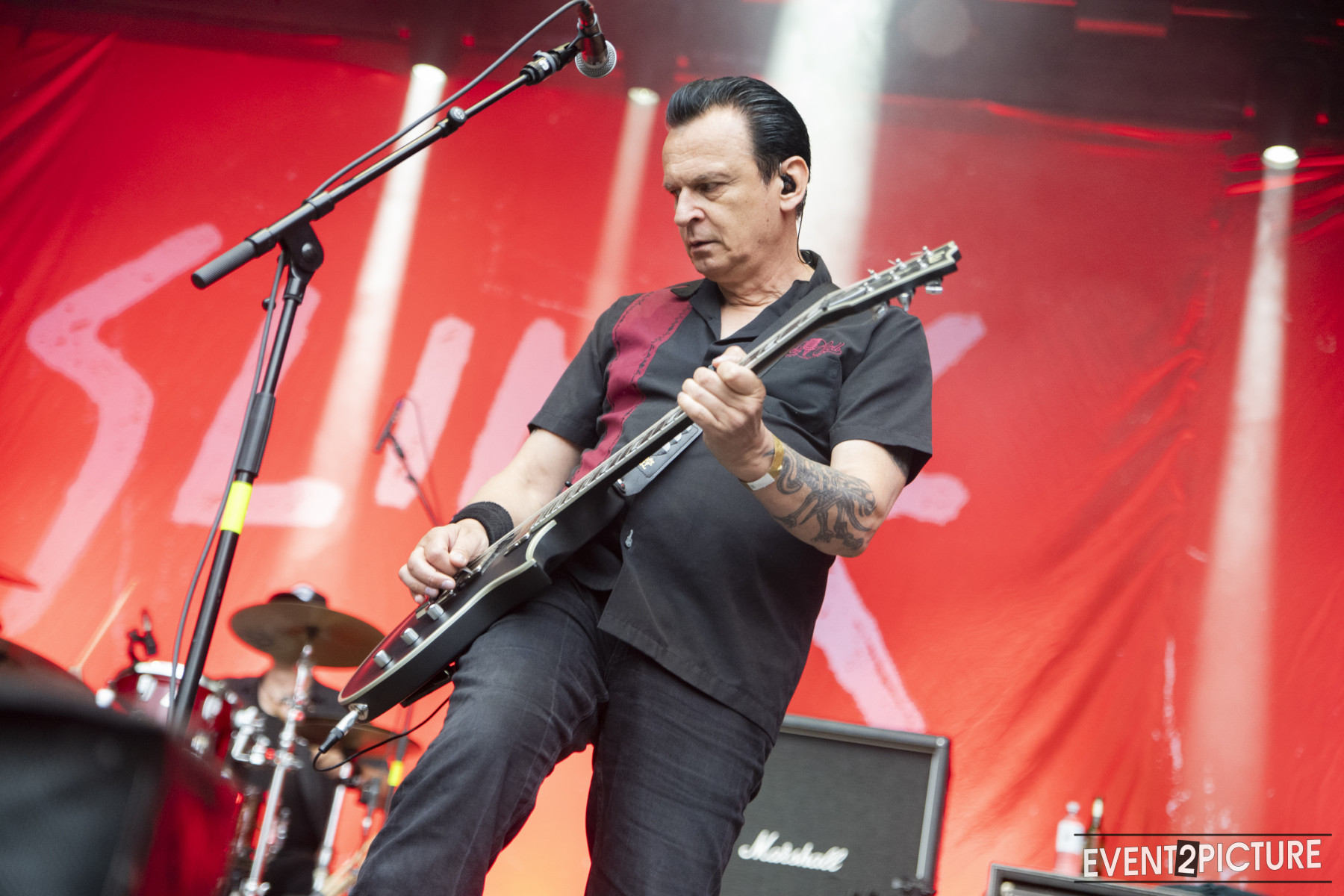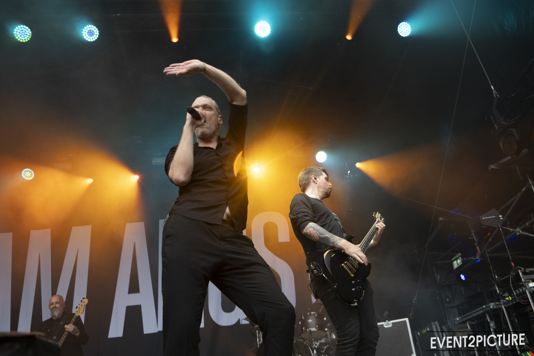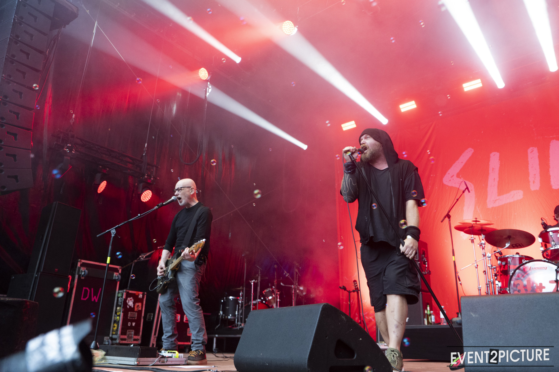 Besonderes Augenmerk liegt an diesem Tag auf Slime. Mit Tex Brasket als Sänger seit 2021 hat die Band eine Stimme gefunden, die sowohl die bekannten Klassiker wie „Alle gegen alle“ als auch neue Stücke vom aktuellen, 13. Album prägnant interpretiert. „Armes Deutschland“ und andere neue Titel gewinnen durch seine persönliche Geschichte zusätzlich an Gewicht. Das Zusammenspiel von altbekanntem Material und neuem Repertoire funktioniert nahtlos.