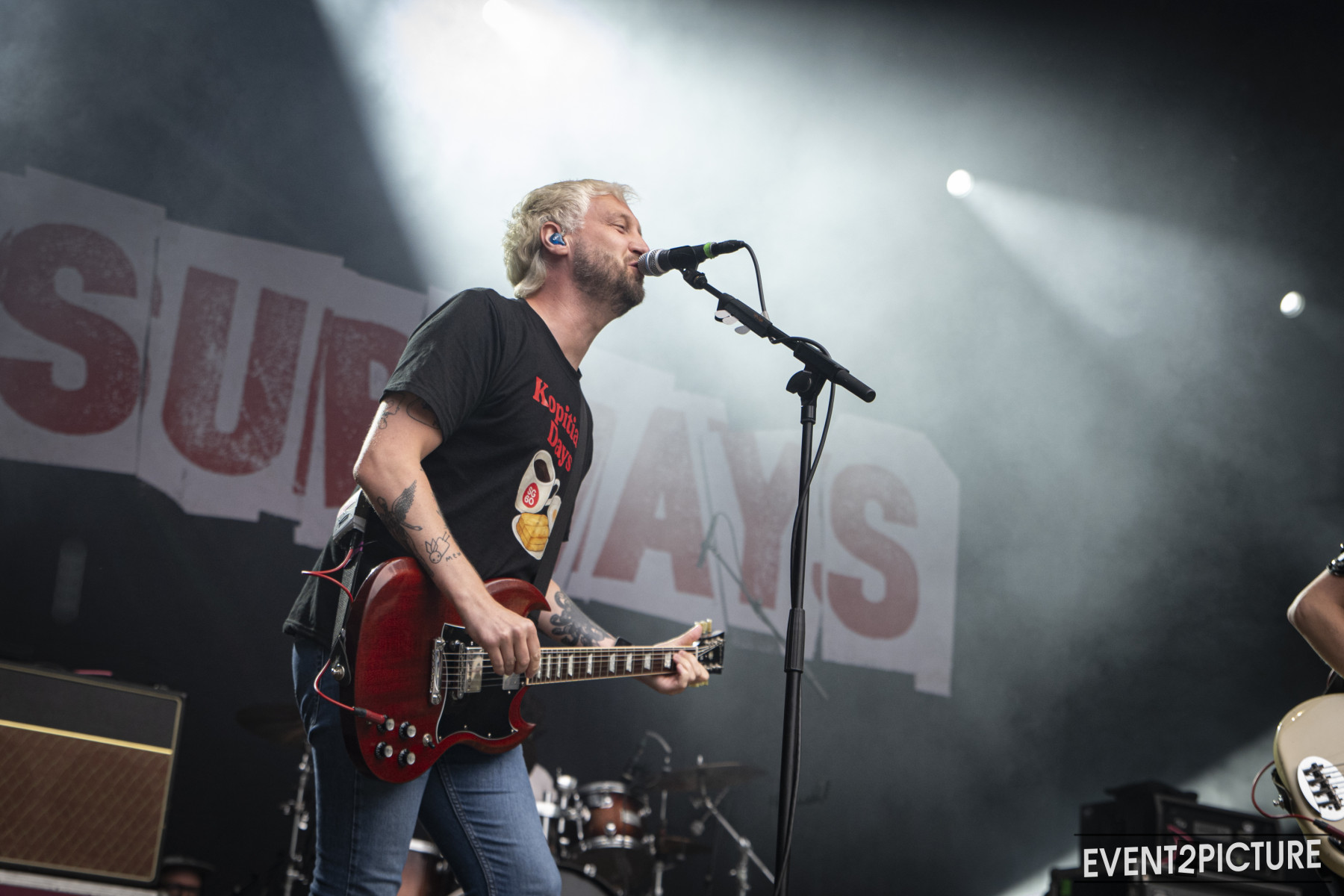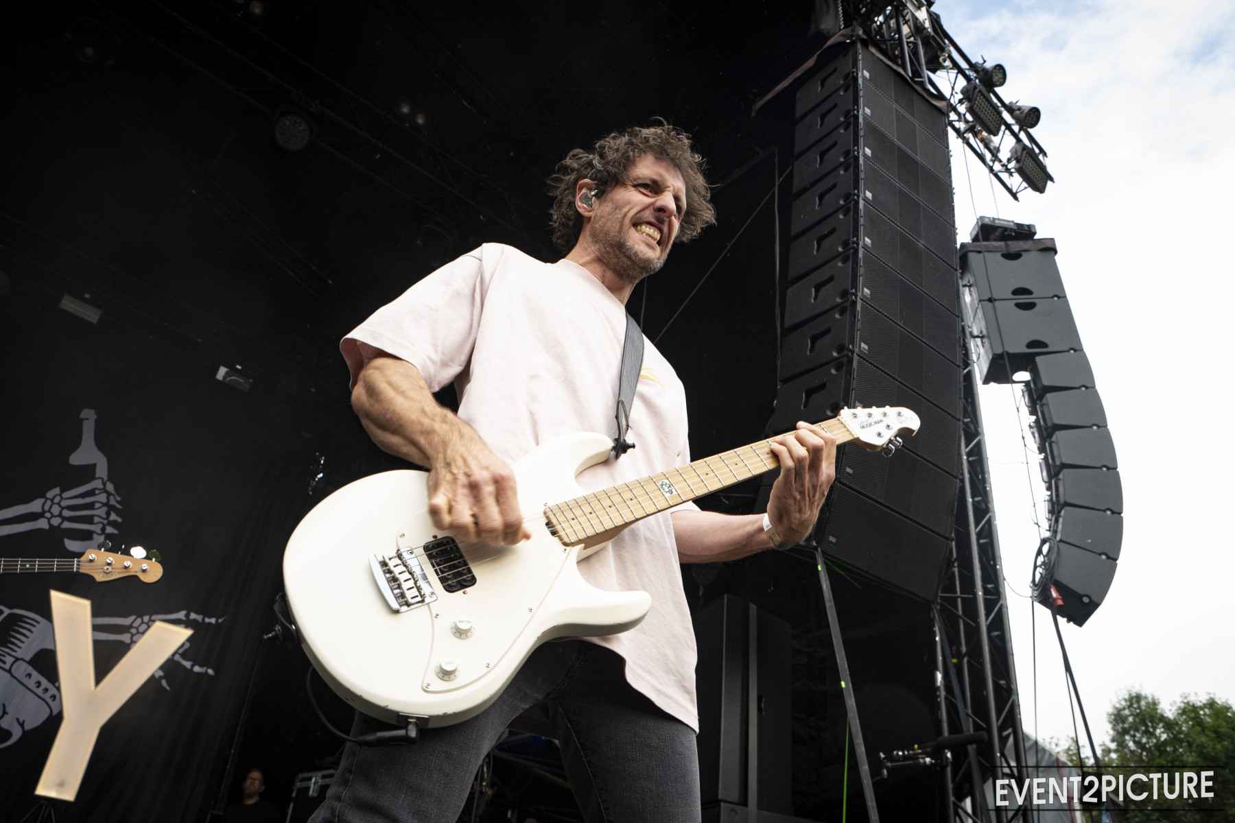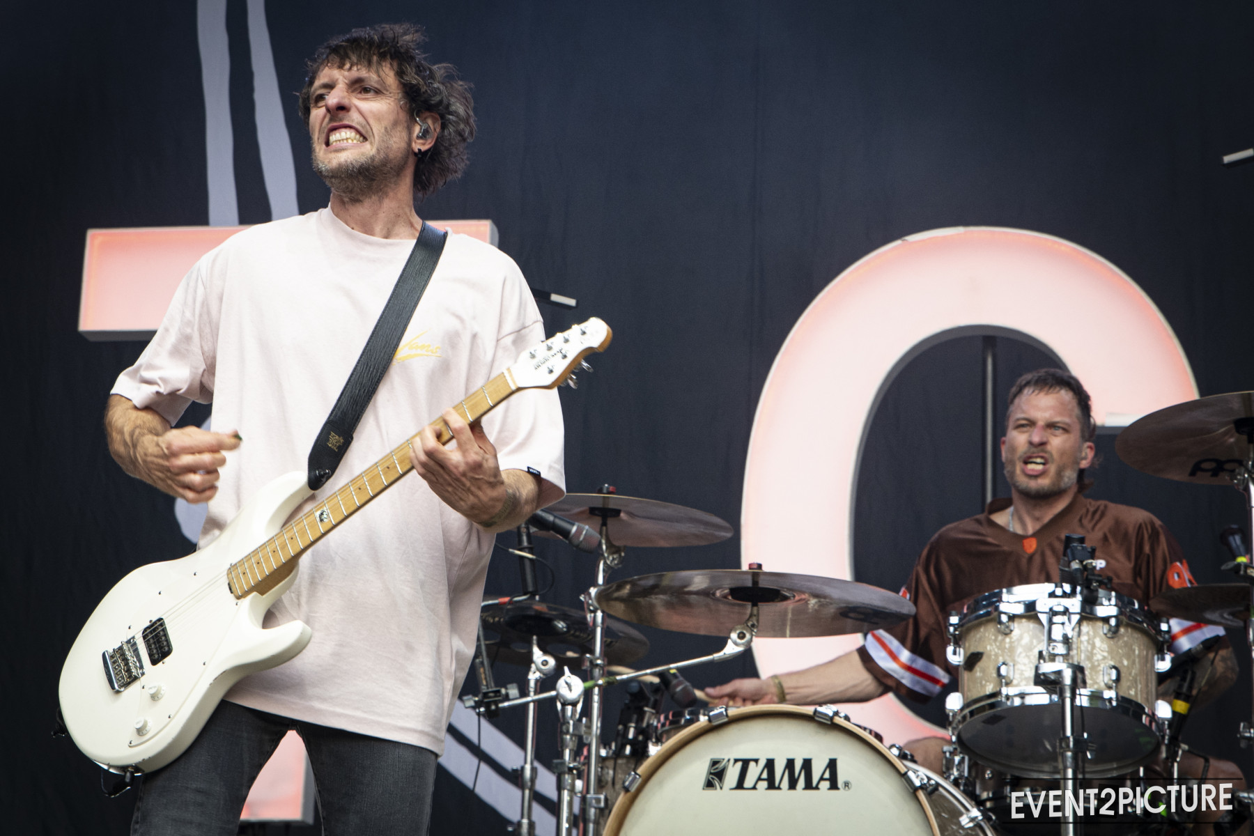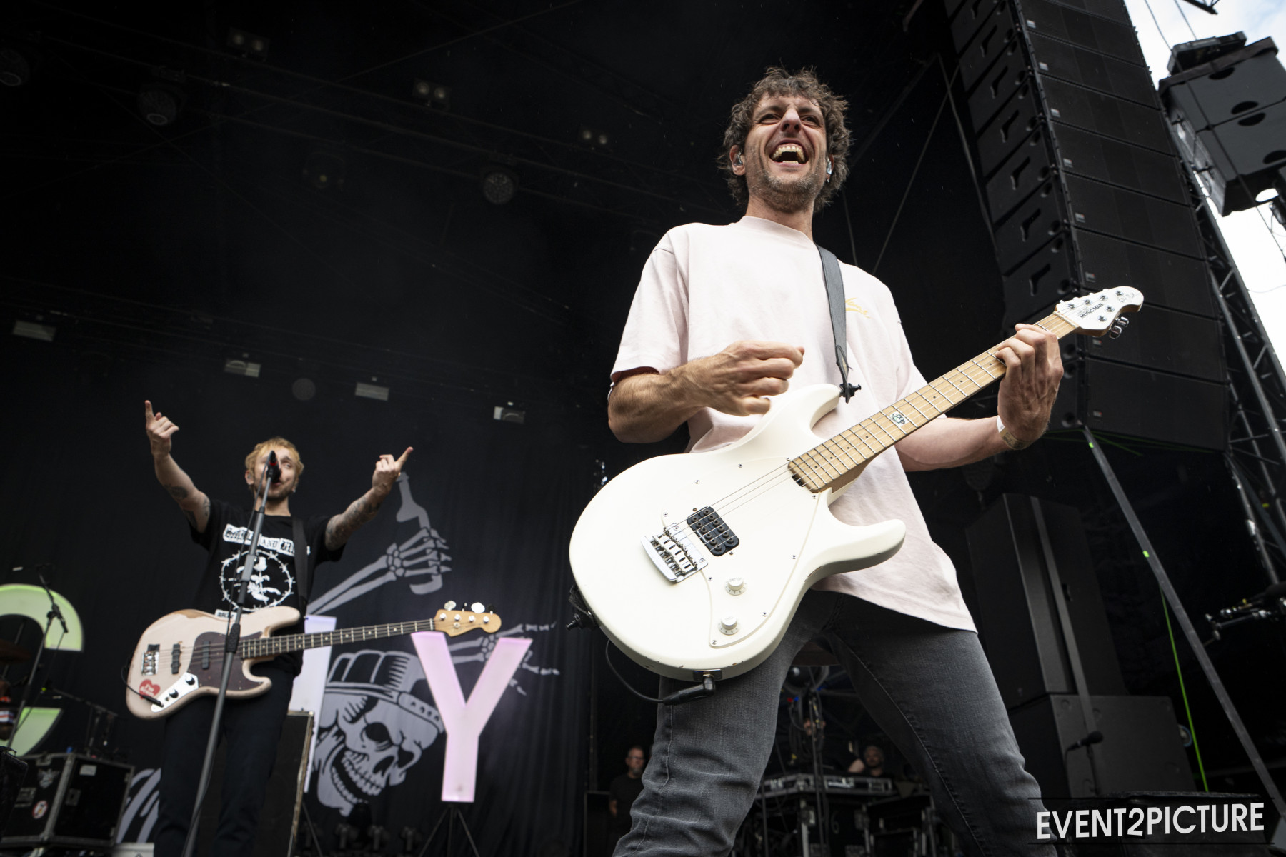 Das britische Trio The Subways liefert ein Set, das von Anfang an auf Bewegung ausgerichtet ist. Frontmann Billy Lunn sprintet von der Bühne, springt in den Matsch und spielt durchnässt weiter. Die Songauswahl umfasst „Oh Yeah“, „Kiss Kiss Bang Bang“, „Influencer Killed the Rock Star“ und „Rock’n’Roll Queen“. Die Mischung aus Garagenrock, Rock’n’Roll und Punk greift sofort – selbst in den hinteren Reihen wird getanzt.