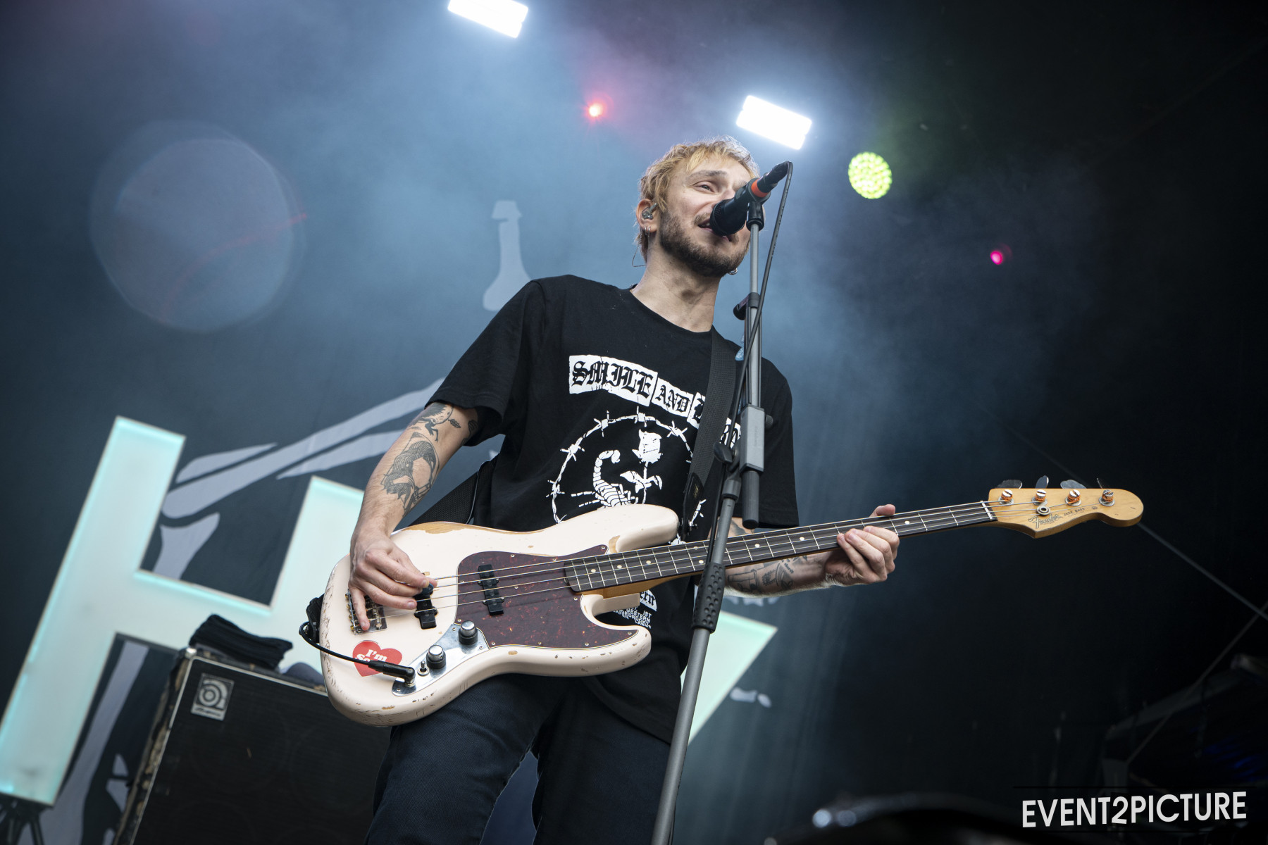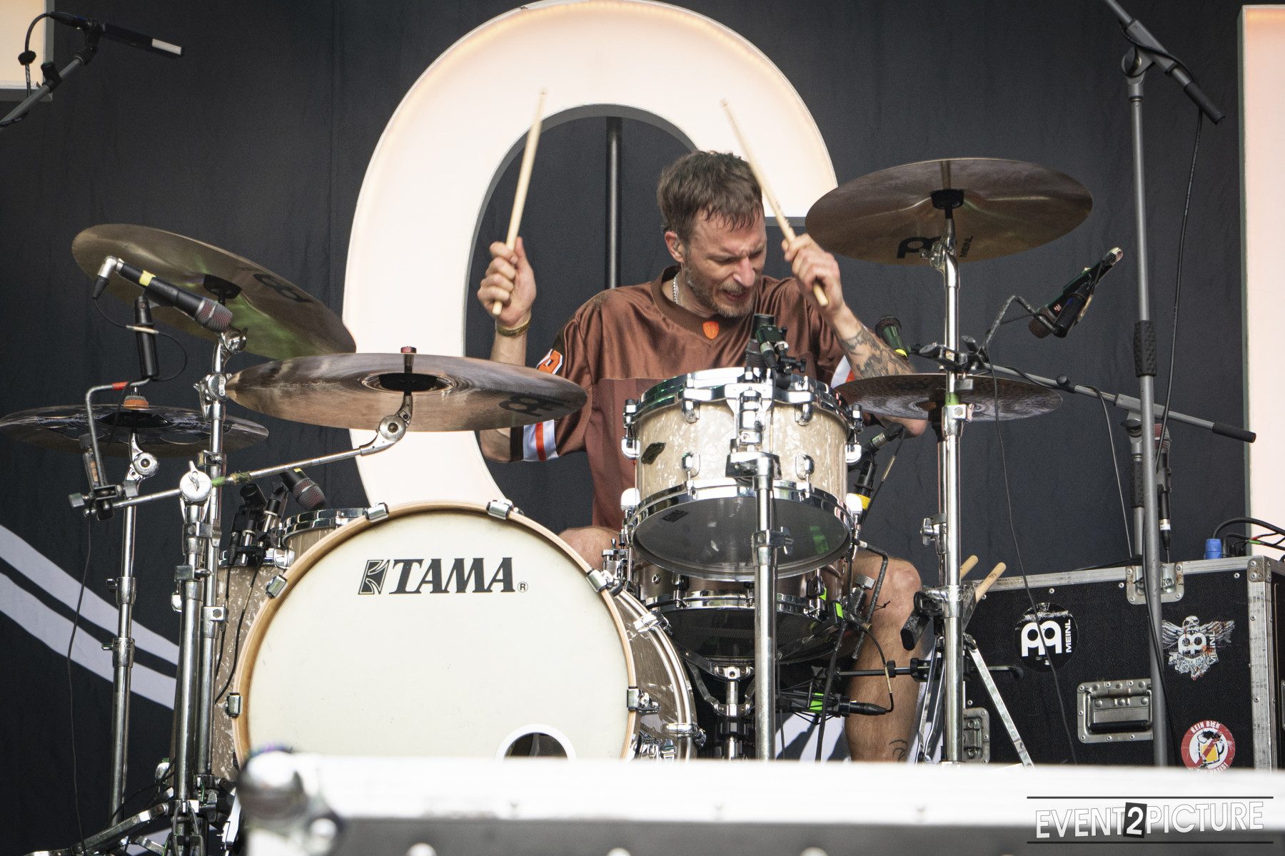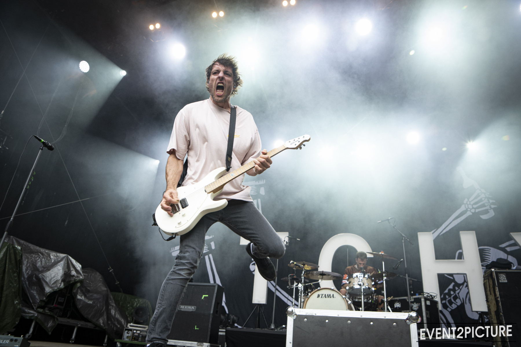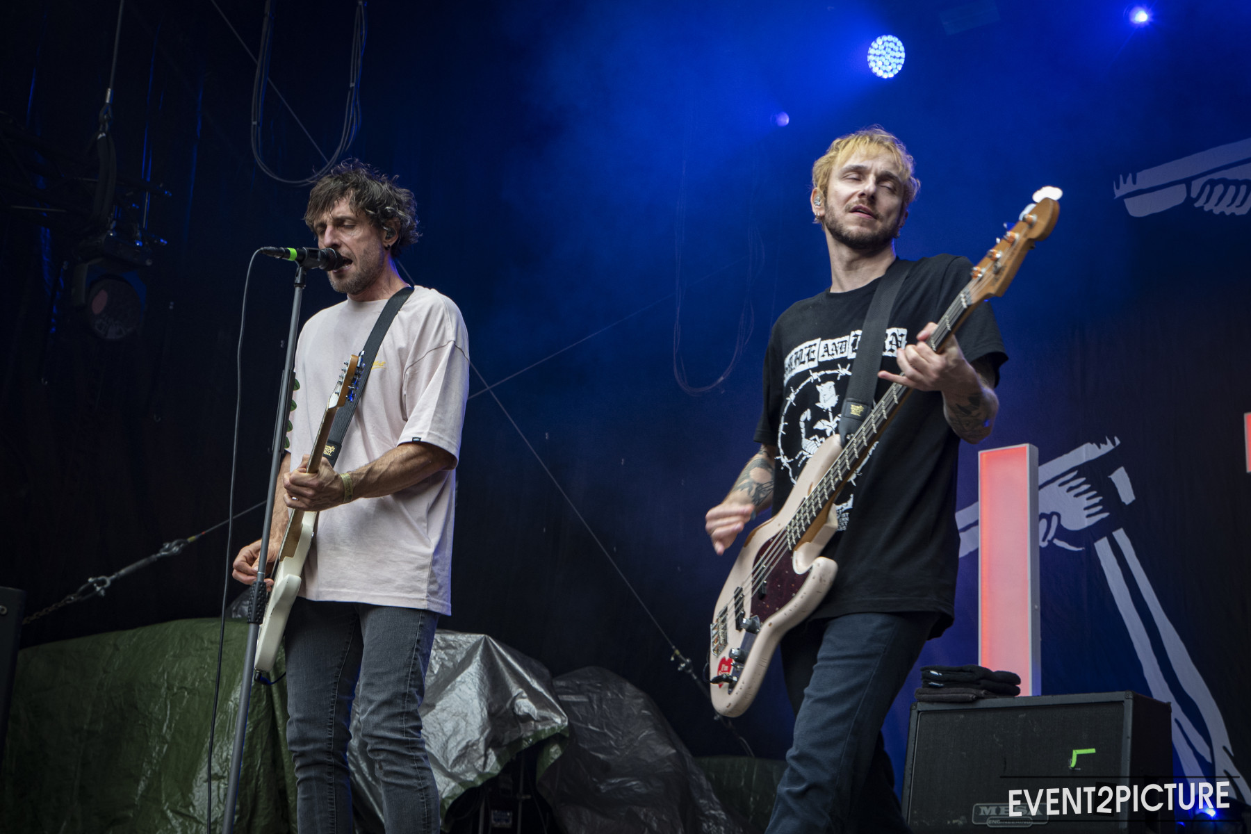 Mit den drei Schwaben von Itchy zieht das Tempo an. Die Band bringt ihren Funpunk mit klarer Ansage und sichtbarer Spielfreude auf die Bühne. Das Publikum verwandelt den Schlamm kurzerhand in einen Tanzboden, Circle Pits bilden sich und lösen sich wieder auf, während der Regen ohne Unterbrechung weiterfällt.