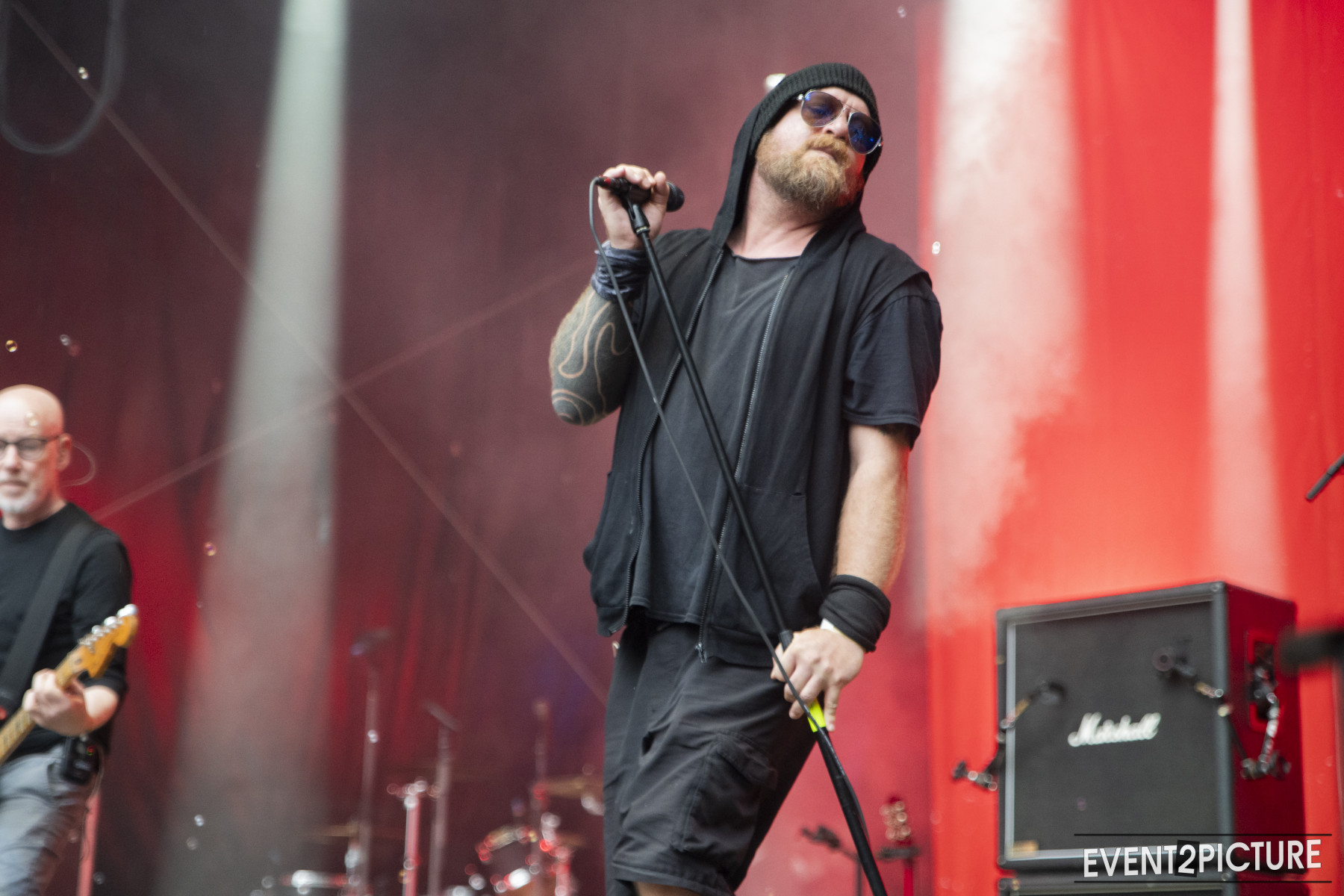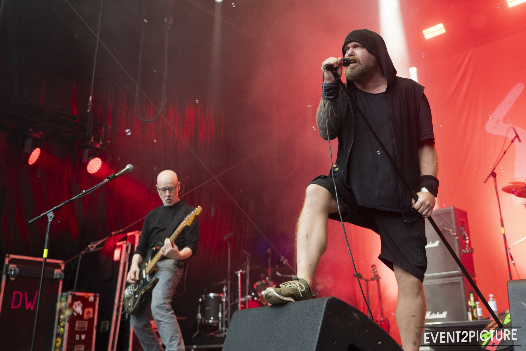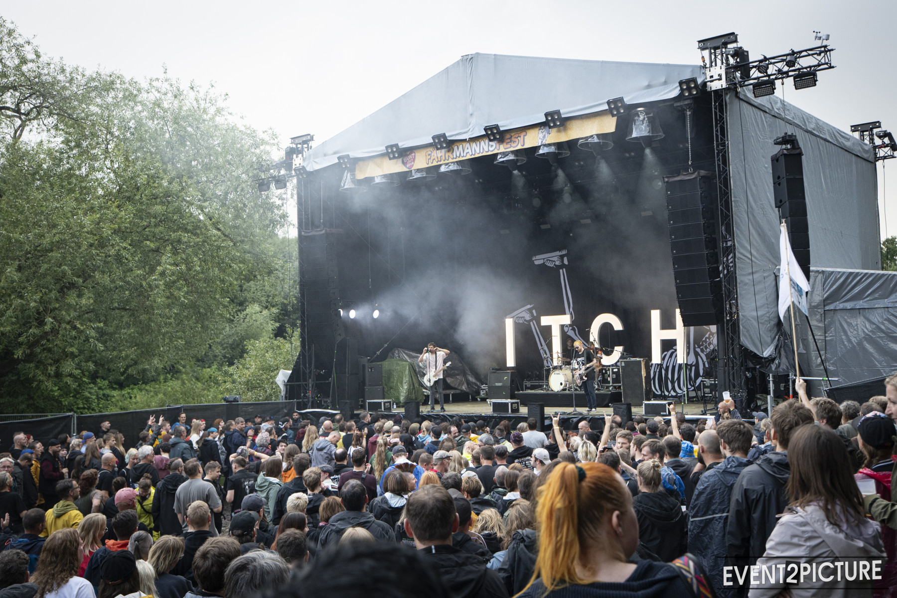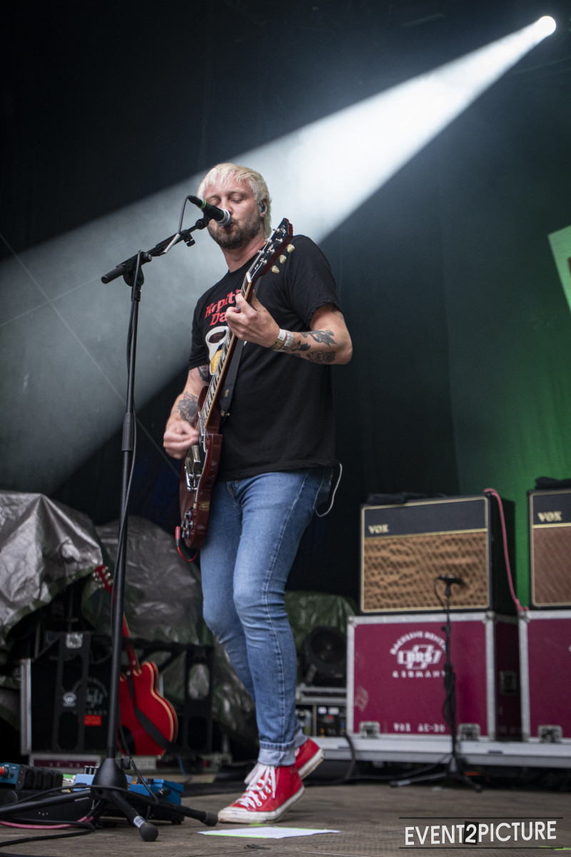 Mit den drei Schwaben von Itchy zieht das Tempo an. Die Band bringt ihren Funpunk mit klarer Ansage und sichtbarer Spielfreude auf die Bühne. Das Publikum verwandelt den Schlamm kurzerhand in einen Tanzboden, Circle Pits bilden sich und lösen sich wieder auf, während der Regen ohne Unterbrechung weiterfällt.