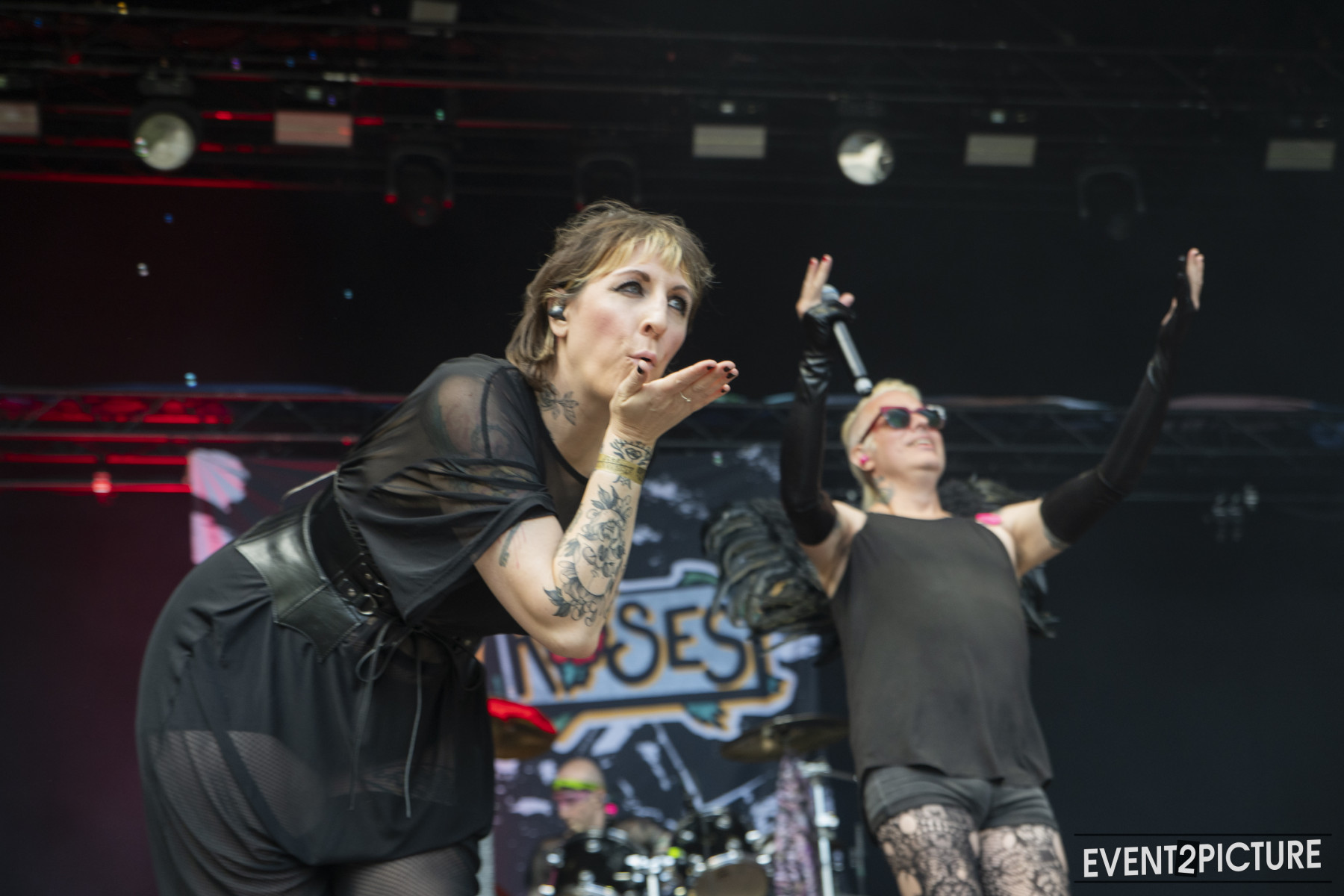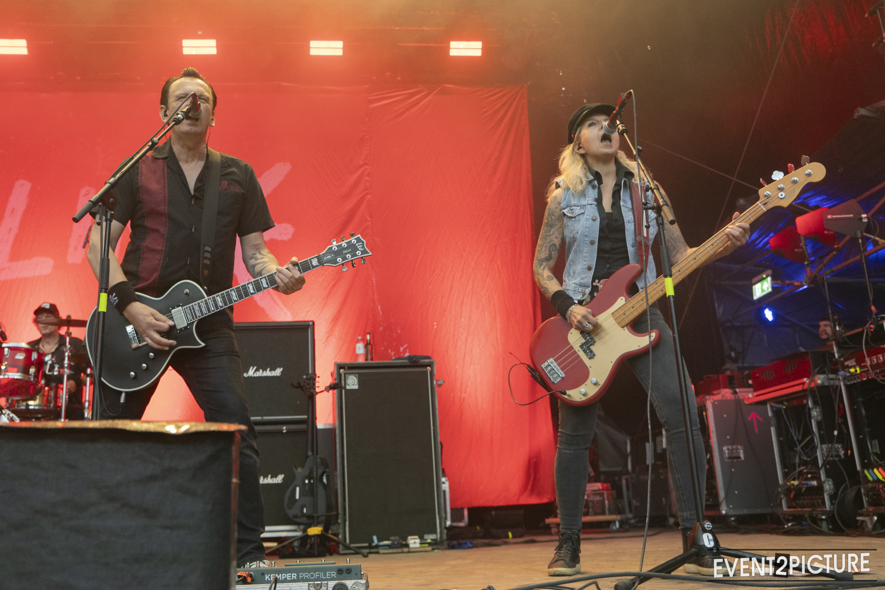 Auf der Hauptbühne bringen The Iron Roses frische Energie ins Spiel. Sänger Nathan Gray, schrill gekleidet und mit charismatischer Bühnenpräsenz, führt eine Show, die Elemente aus Punkrock und theatralischer Inszenierung verbindet. Der Sound ist druckvoll, die Übergänge zwischen den Songs wirken wie inszenierte Szenenfolgen, und die Ansagen sind pointiert. Die Band liefert eine Mischung aus kämpferischen Hymnen und melodischen Momenten – ein Auftritt, der visuell wie musikalisch im Gedächtnis bleibt.