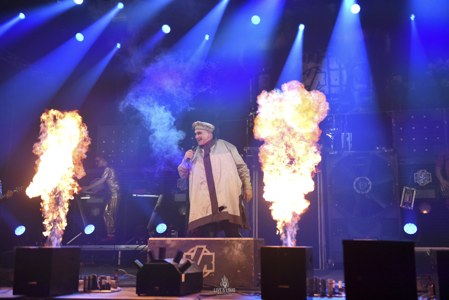 Gleichzeitig bleibt die Show in Bewegung. Die „Engel“-Szenerie funktioniert nicht als bloßer Effekt, sondern als fester Bestandteil des Ablaufs. Wenn sich der Frontmann mit Flügeln in die Höhe erhebt, ist das kein Zirkusmoment, sondern sauber eingebaut und logisch innerhalb der Dramaturgie des Sets.