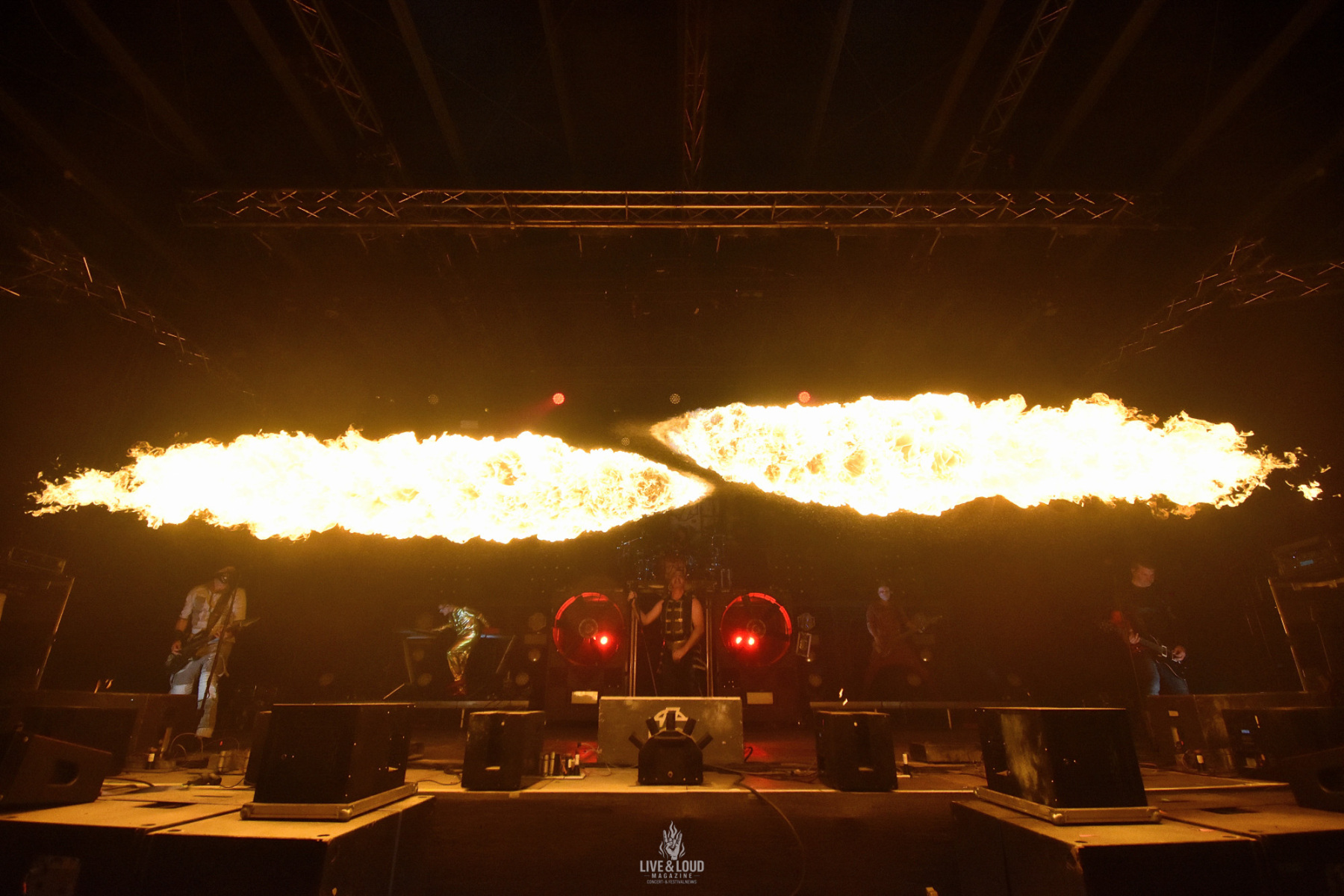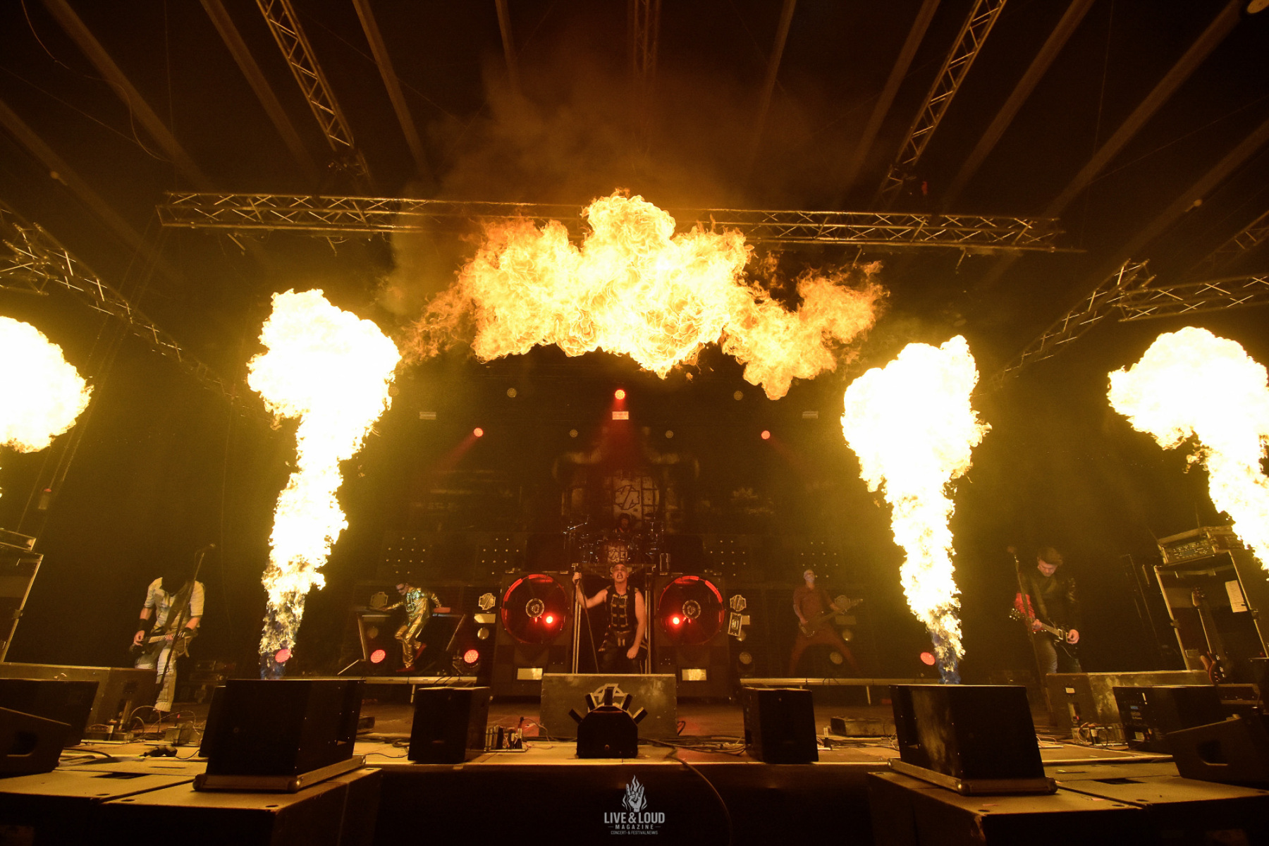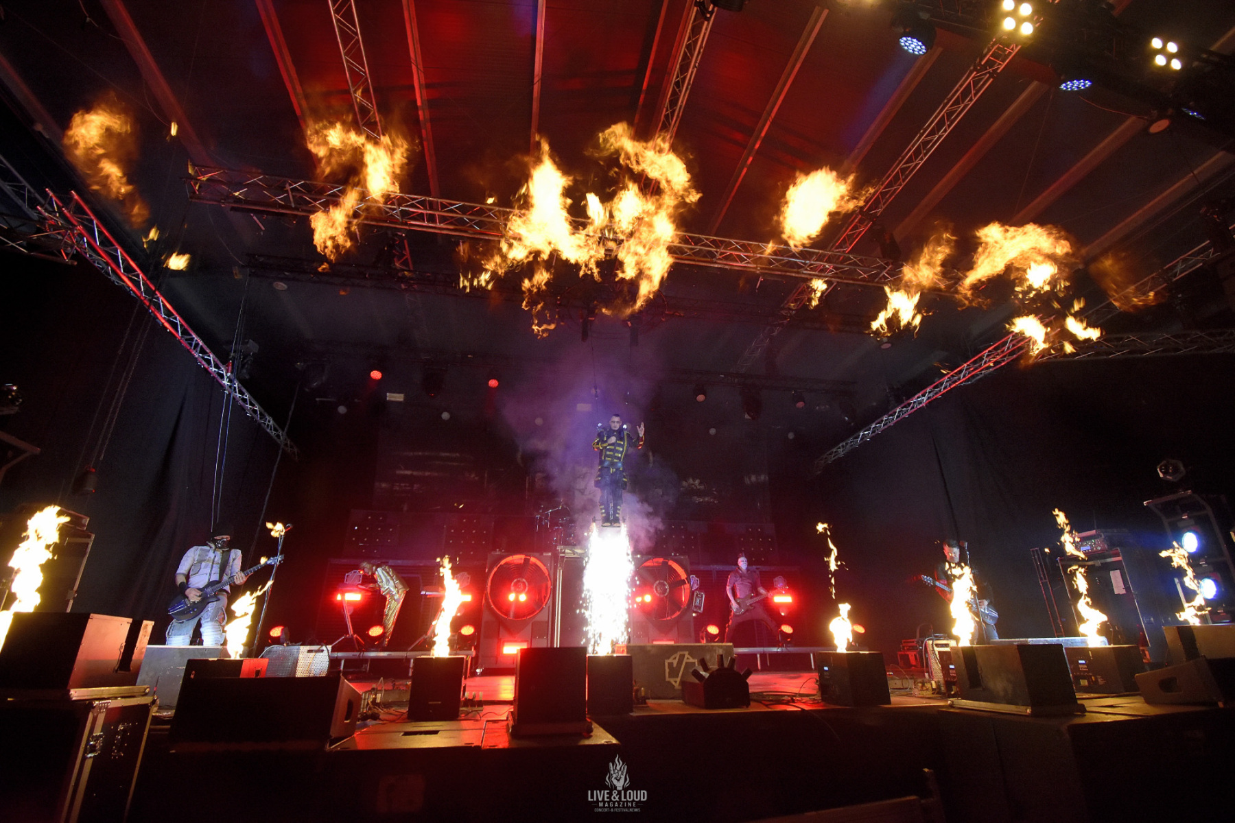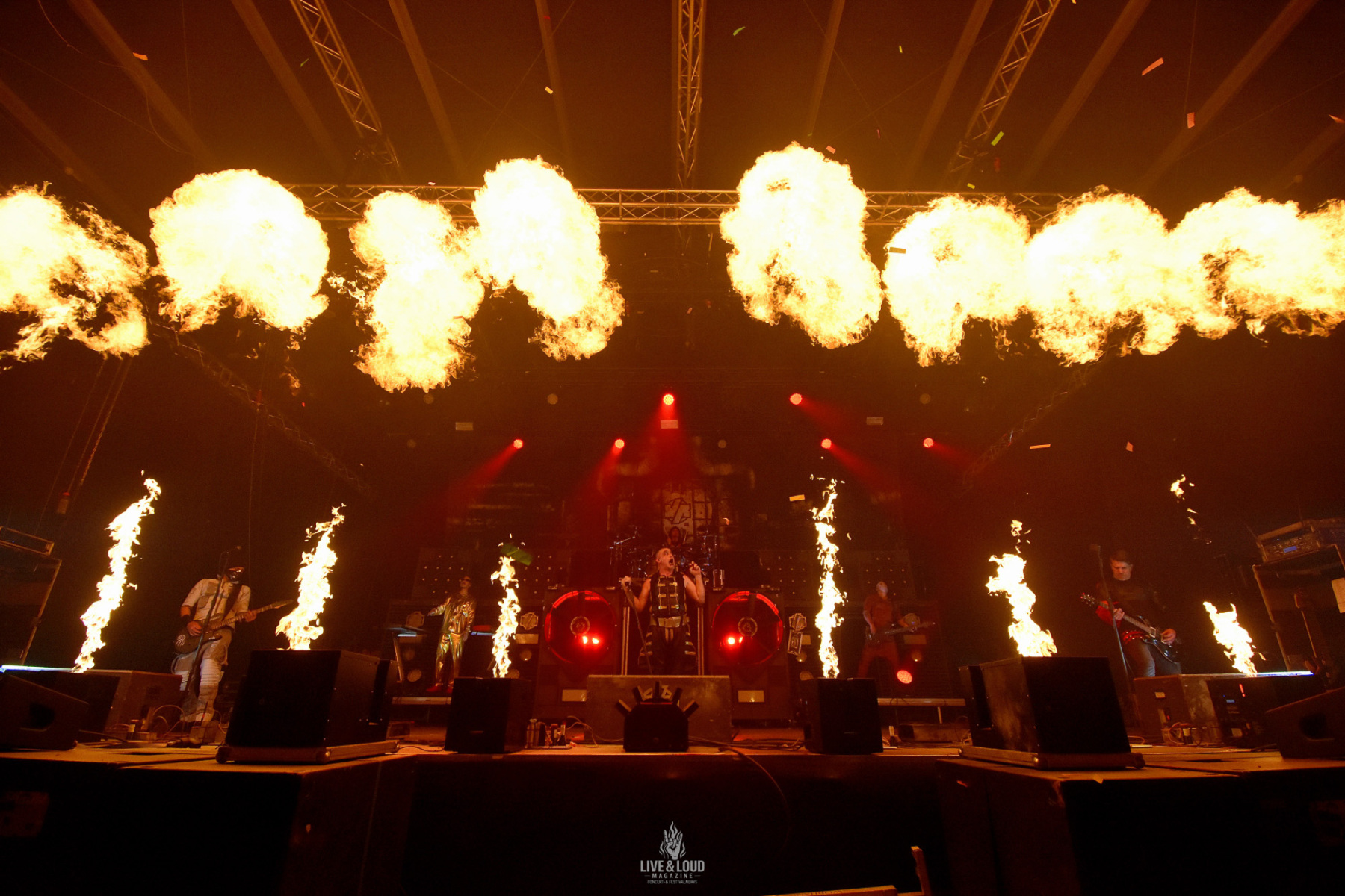 Gleichzeitig bleibt die Show in Bewegung. Die „Engel“-Szenerie funktioniert nicht als bloßer Effekt, sondern als fester Bestandteil des Ablaufs. Wenn sich der Frontmann mit Flügeln in die Höhe erhebt, ist das kein Zirkusmoment, sondern sauber eingebaut und logisch innerhalb der Dramaturgie des Sets.