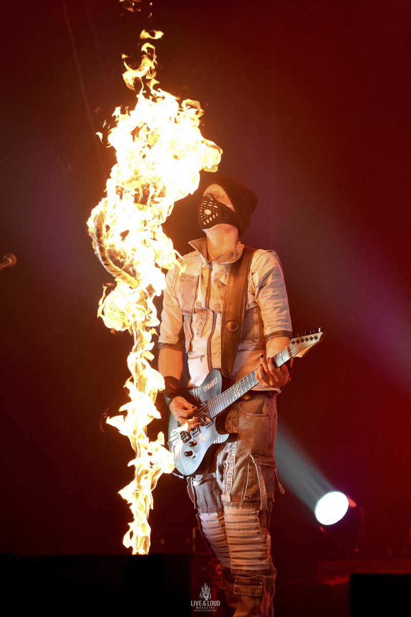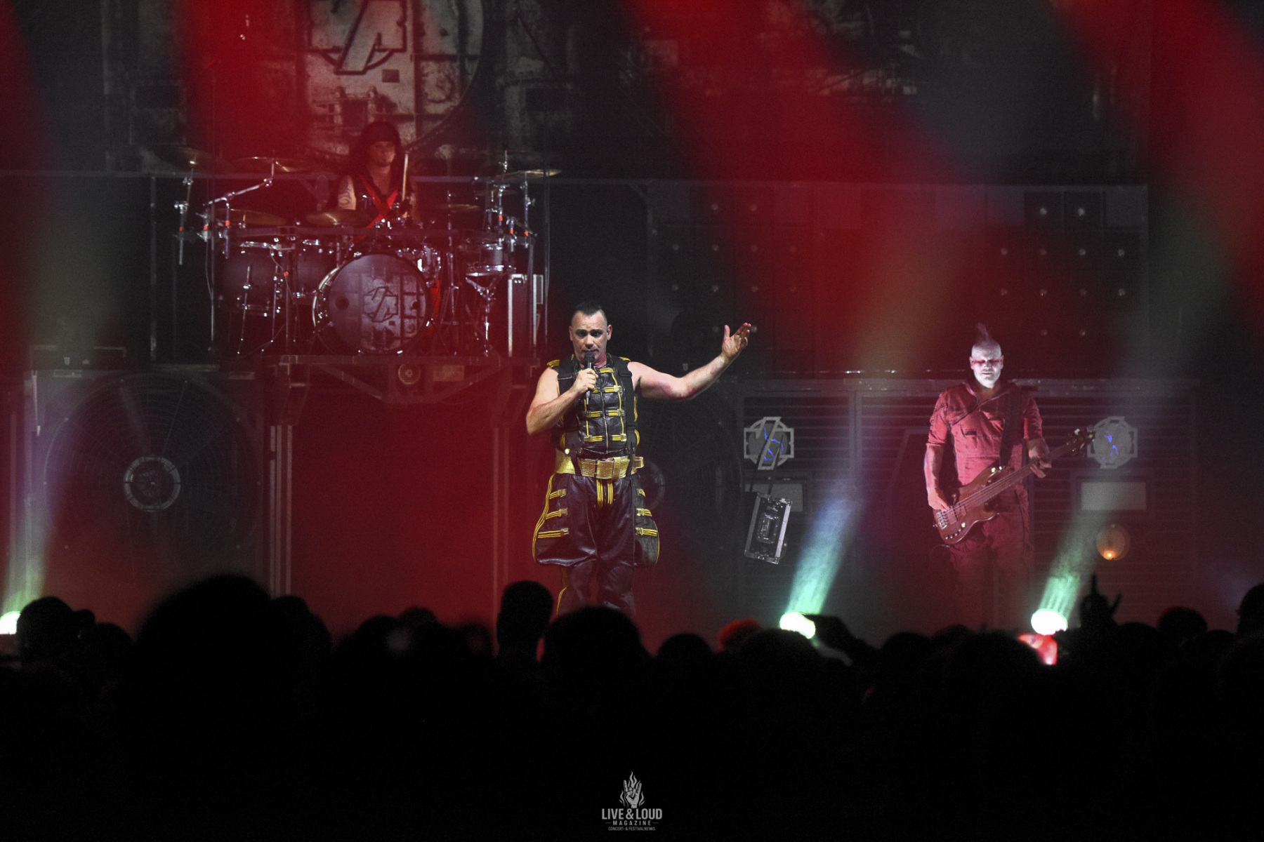 Gleichzeitig bleibt die Show in Bewegung. Die „Engel“-Szenerie funktioniert nicht als bloßer Effekt, sondern als fester Bestandteil des Ablaufs. Wenn sich der Frontmann mit Flügeln in die Höhe erhebt, ist das kein Zirkusmoment, sondern sauber eingebaut und logisch innerhalb der Dramaturgie des Sets.
