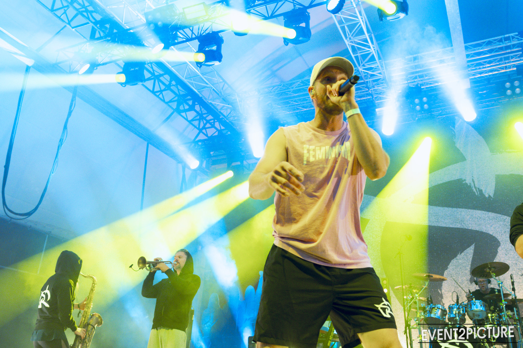 Den Abend eröffneten Kafvka – ebenfalls eine Band, die sich seit Jahren dezidiert gegen rechte Tendenzen stellt. Frontmann Jonas Kakoschke rappte mit klarer Kante: „Alle hassen Nazis, alle hassen Nazis.“ Ein Satz, der lange selbstverständlich war und in Zeiten wie diesen wieder eine deutliche Ansage braucht. Der Ton für den Abend war damit gesetzt: Widerstand, Haltung und klare Worte gegen Rechts, getragen von Rhythmus, Wut und positiver Energie.
