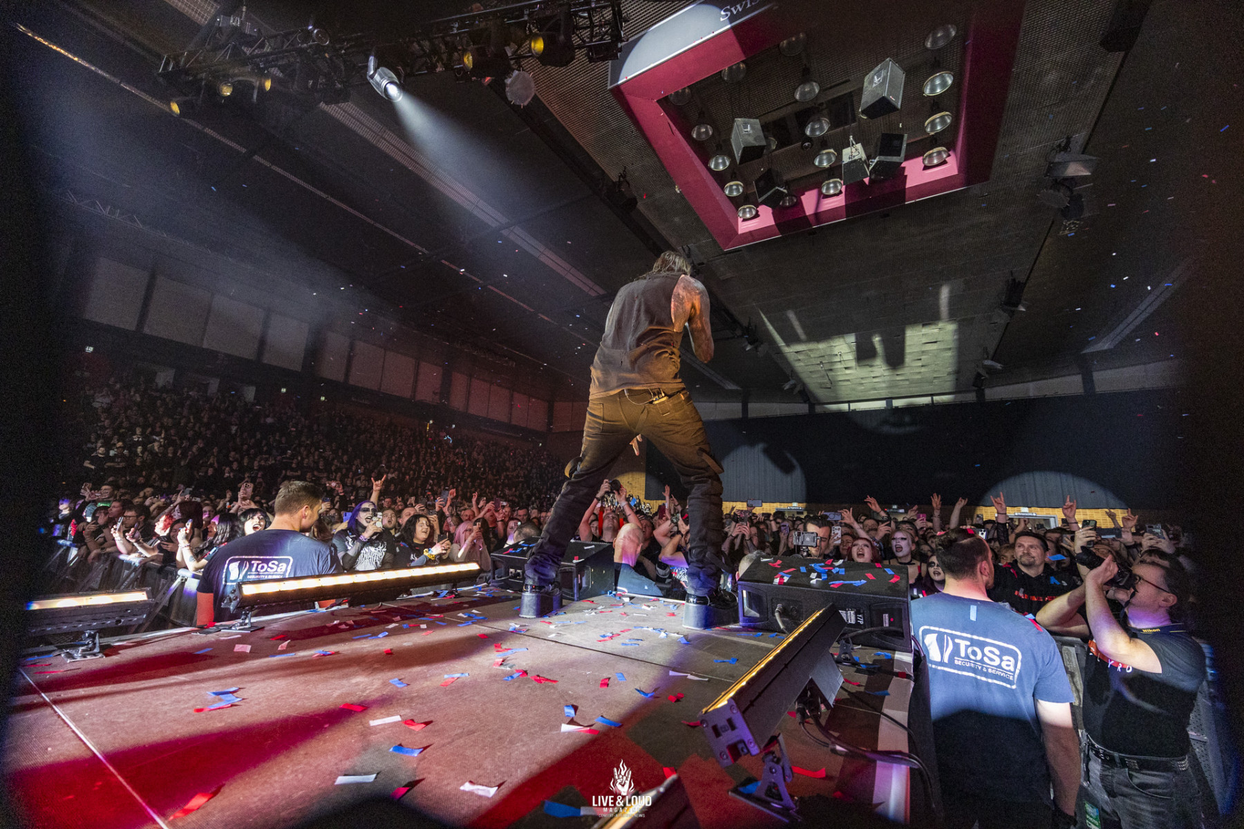 Das Bühnenbild selbst war eine visuelle Fortführung der lyrischen Themen. Industrielle Strukturen, kombiniert mit einer Lichtregie, die zwischen klinischer Kälte und feuriger Opulenz wechselte, schufen den Rahmen für einen Abend, der die Sinne forderte. Es gab keine unnötigen Pausen. Die Band verließ sich ganz auf die Kraft ihrer Kompositionen und die visuelle Gewalt ihrer Inszenierung. Die Swiss Life Hall wurde zum Schauplatz einer audiovisuellen Reise, die das Publikum von der ersten Sekunde an in ihren Bann zog.