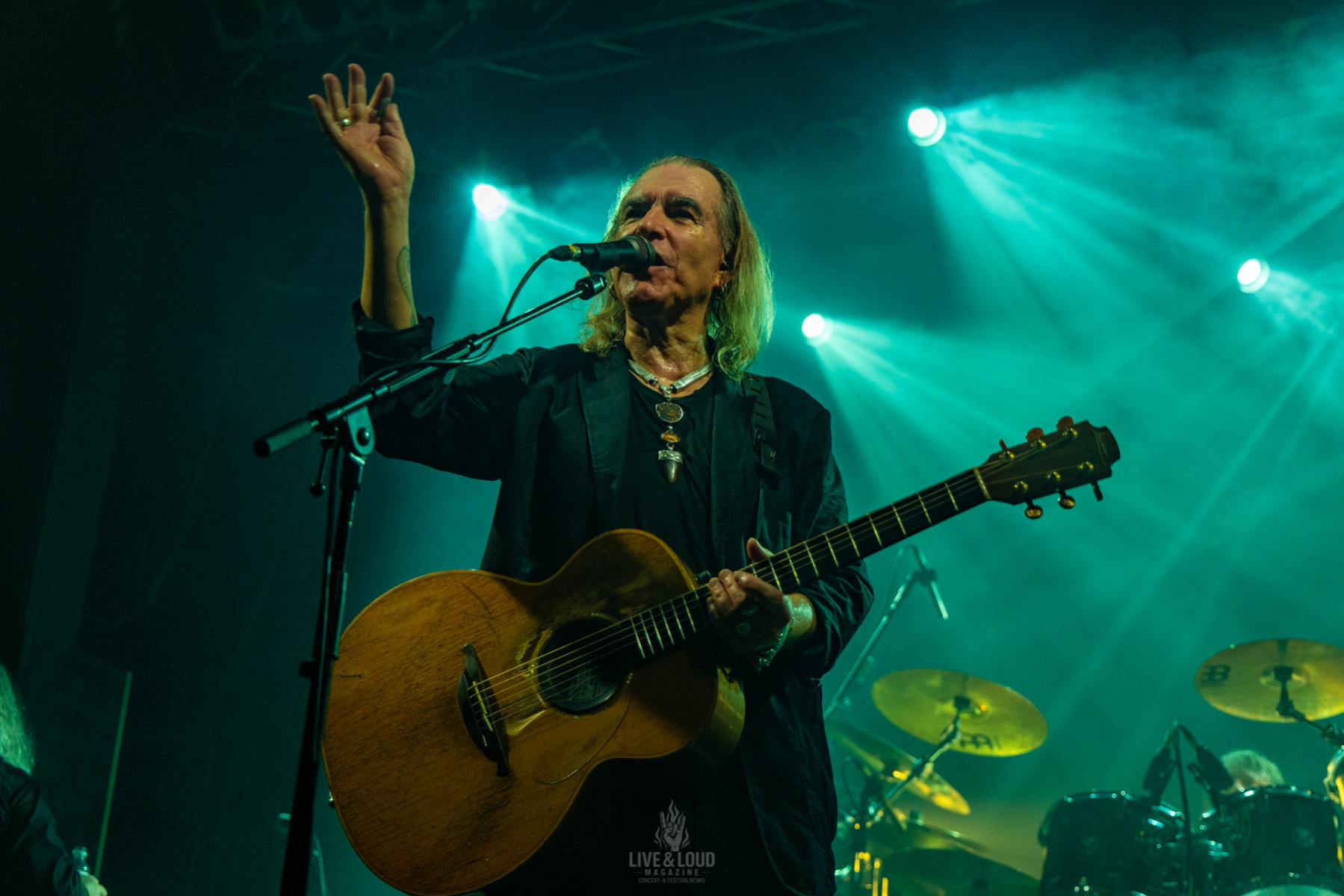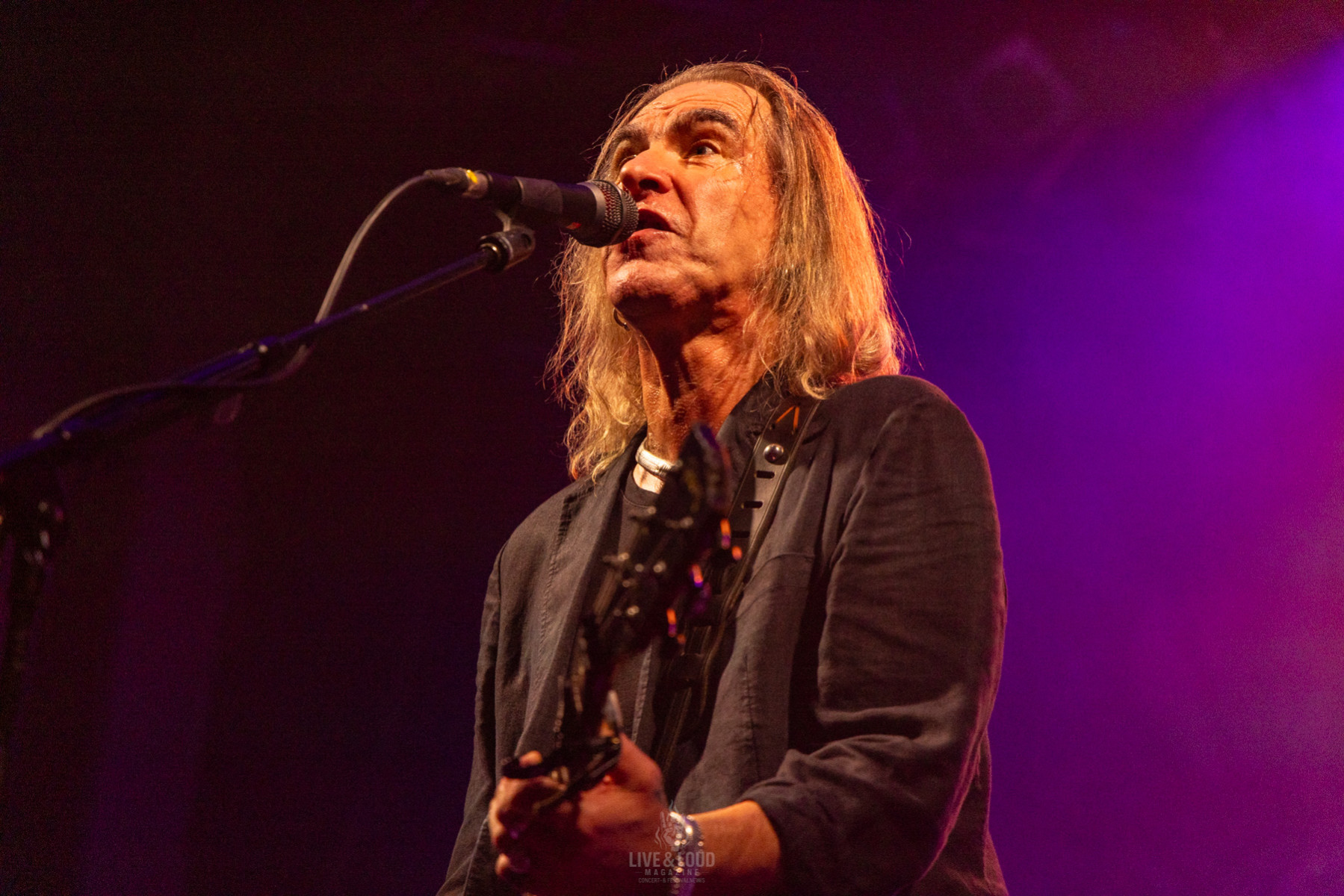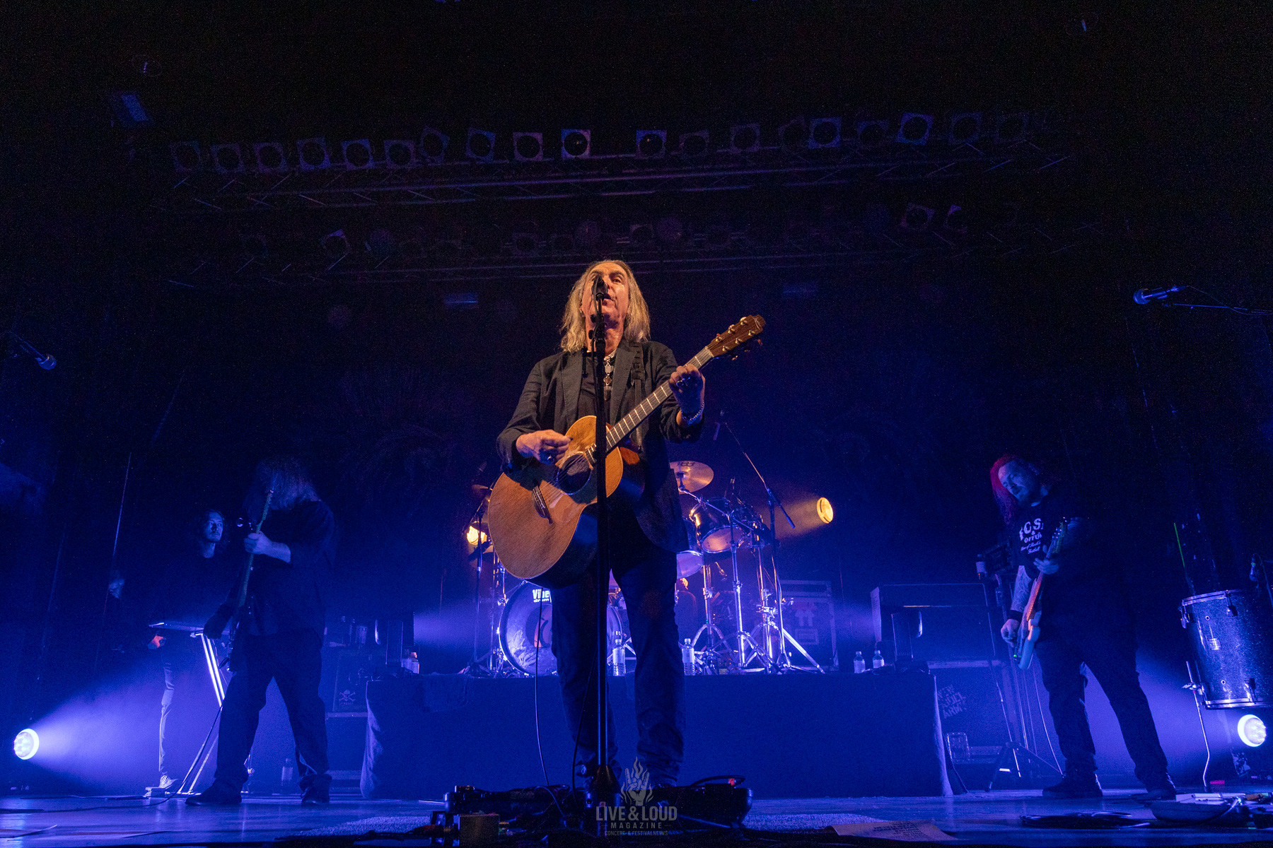 Der Auftakt mit „Snelsmore Wood“ setzt einen rauen, rhythmisch fokussierten Ton. Justin Sullivan steht mit der Akustikgitarre im Zentrum, sein Anschlag definiert den Puls, die Stimme führt eng und öffnet in den Refrains das Feld. Die Themen scheinen auf, ohne ausgestellt zu werden: Erinnern, Entlarvung, Unruhe. Entscheidend ist die musikalische Umsetzung. Der Song etabliert eine Spannung, die sich über den ganzen Abend hält: dicht genug, um zu tragen, offen genug, damit Nuancen ihren Platz finden. Das Publikum nimmt die Dynamik die sich auf der Bühne entwickelt dankend auf.