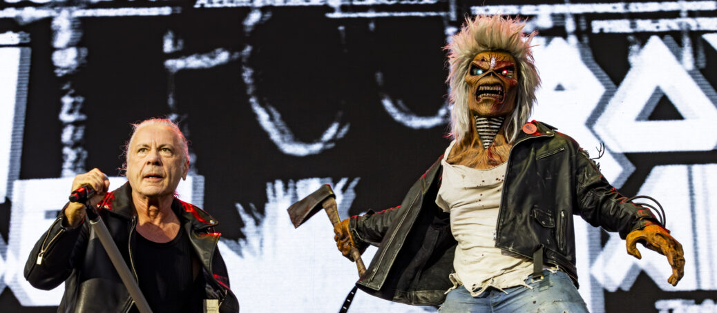 Wenig später starten Iron Maiden dann durch – und es gibt kein Halten mehr. „Murders in the Rue Morgue“, „Wrathchild“ und „Killers“ geben den Auftakt – drei Songs aus der frühen Phase, hart, kompakt, direkt. Zu „Killers“ erhält die Band Besuch von Maskottchen Eddie, der mit einer Axt bewaffnet über die Bühne stapft und versucht, den Protagonisten der Band symbolisch die Köpfe abzuschlagen – ganz in klassischer Maiden-Manier.