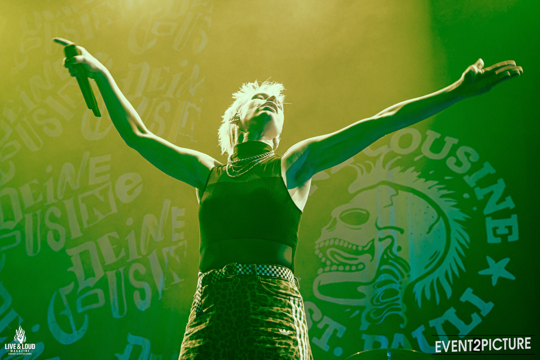 Vom ersten Song an animiert sie die Menge zu „Hey, hey“-Rufen, nimmt die Distanz zwischen Bühne und Innenraum weg und sucht konsequent den Kontakt zum Publikum. Als sie schließlich in die Menge steigt und sich über den Köpfen der Fans zurück zur Bühne tragen lässt, ist klar: Dieses Vorprogramm ist alles andere als Pflichtprogramm. Die Menge ist laut, aufmerksam und komplett bei der Sache, während schon die ersten Becher durch die Luft fliegen.