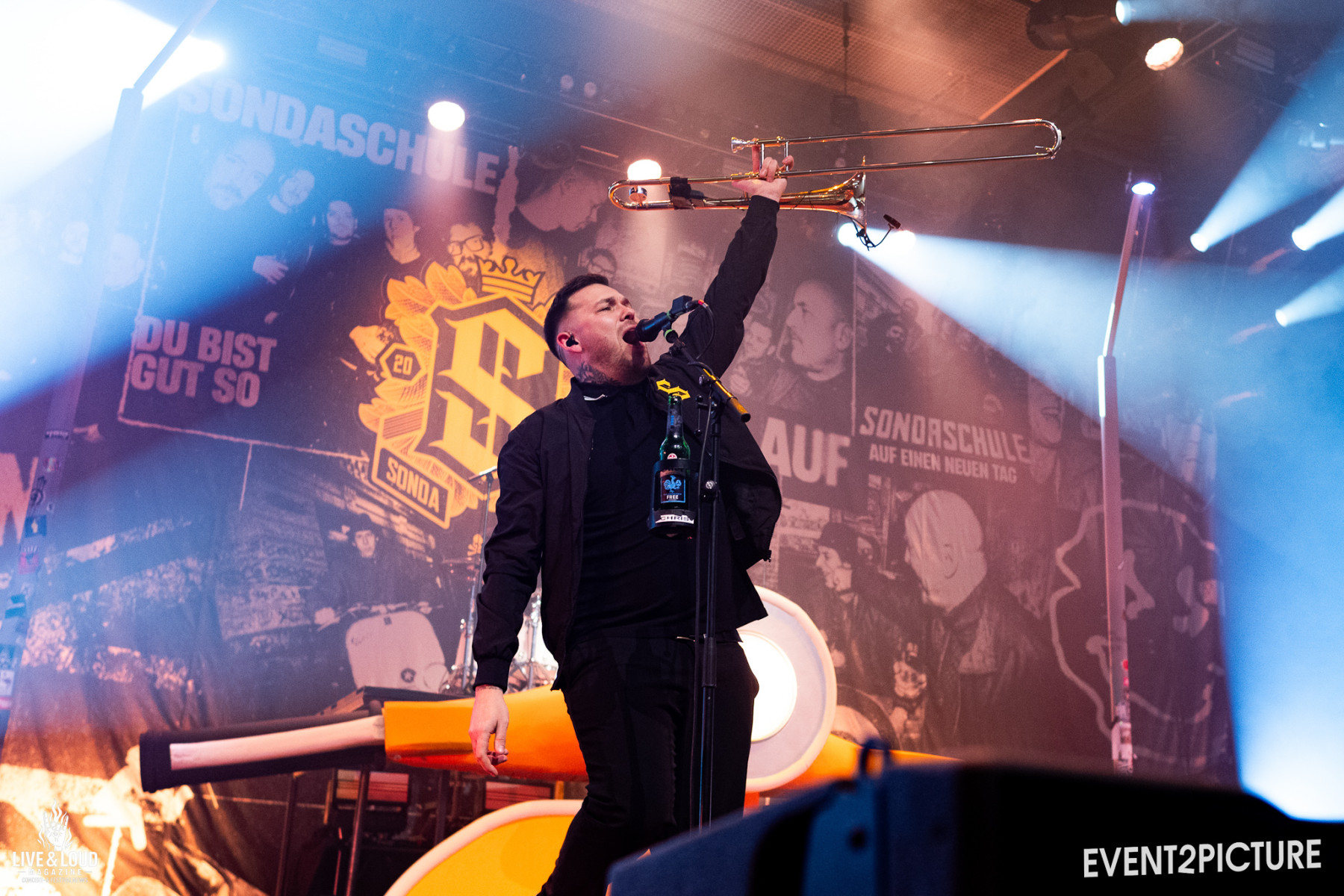 Sänger Costa Cannabis, bürgerlich Tim Kleinrensing, ist an diesem Abend weniger Frontmann im klassischen Sinn, sondern eher Dirigent eines riesigen Chores. Immer wieder animiert er zu Mitsingpassagen, „Uoh-oh-oh“-Chören und kollektiven Ausrastern. Irgendwann hört man auf zu zählen, in wie vielen Songs das Publikum mit eingebunden wird – klar ist nur: Sondaschule nutzen jede Gelegenheit, die Swiss Life Hall in einen Chorraum zu verwandeln.