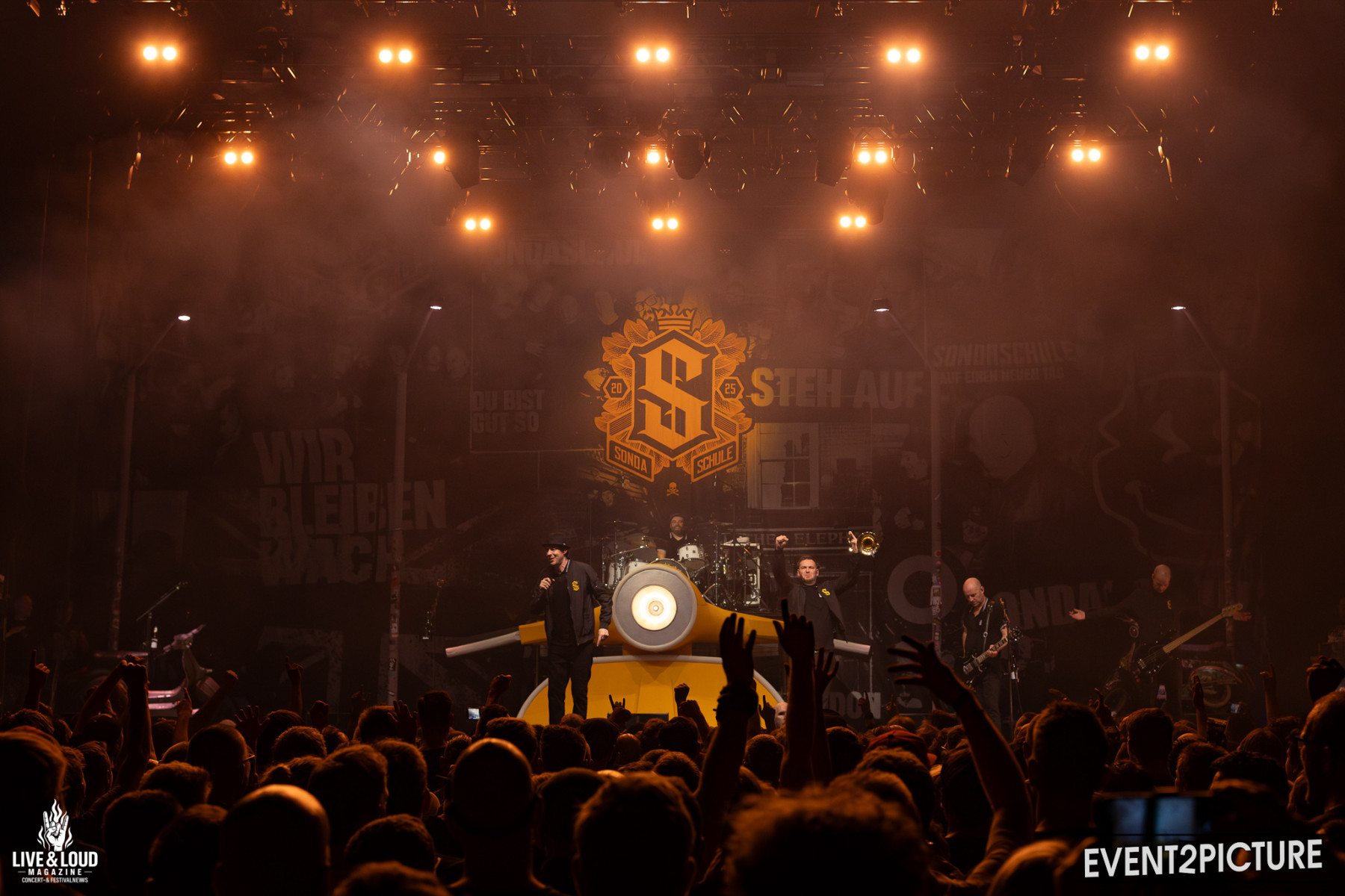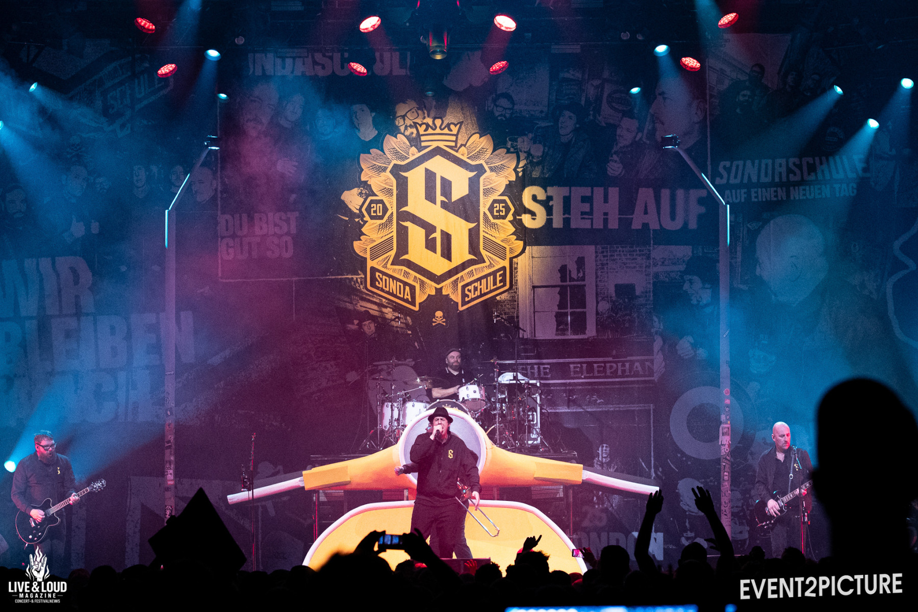 Mit einer langen, tanzbaren Setlist, die ältere Songs mit neueren Stücken verbindet, gehen Sondaschule direkt auf Volllast. Ska-Rhythmen, Upstrokes und druckvolle Refrains sorgen dafür, dass sich der Innenraum in kürzester Zeit in ein einziges, wogendes Feld aus springenden, tanzenden, pogenden Menschen verwandelt. Zwischendurch hat die Security alle Hände voll zu tun, Crowdsurfer sicher abzufangen – ein klares Zeichen dafür, wie sehr die Band ihr Publikum in Bewegung bringt.