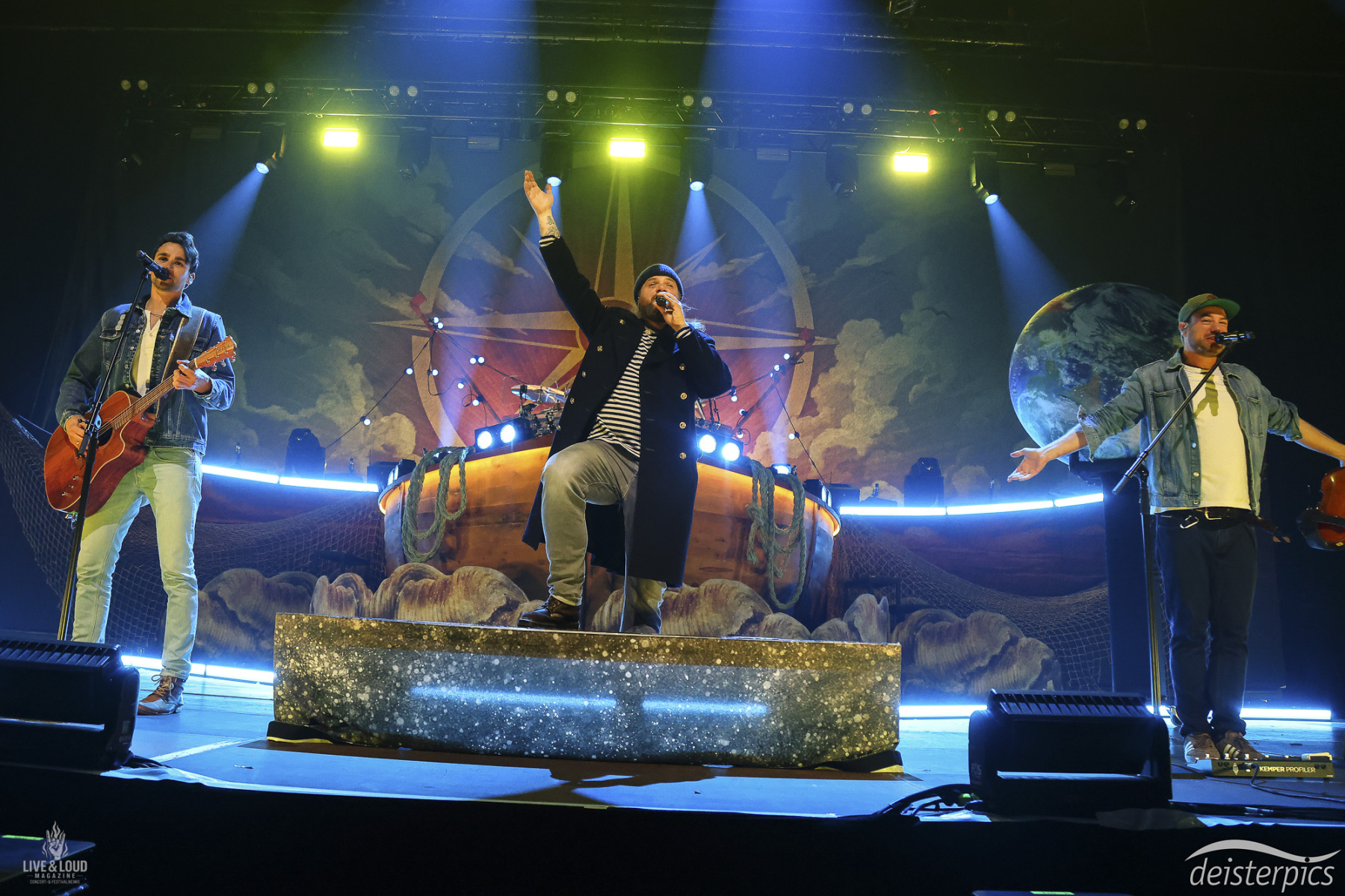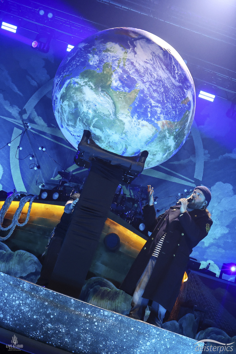 Nach der Umbaupause bleibt die Bühne zunächst verdeckt. Kein schneller Effekt, sondern ein ruhiger Aufbau. Geräusche von Möwen und Wellen legen sich über die Halle und setzen das erste inhaltliche Signal.