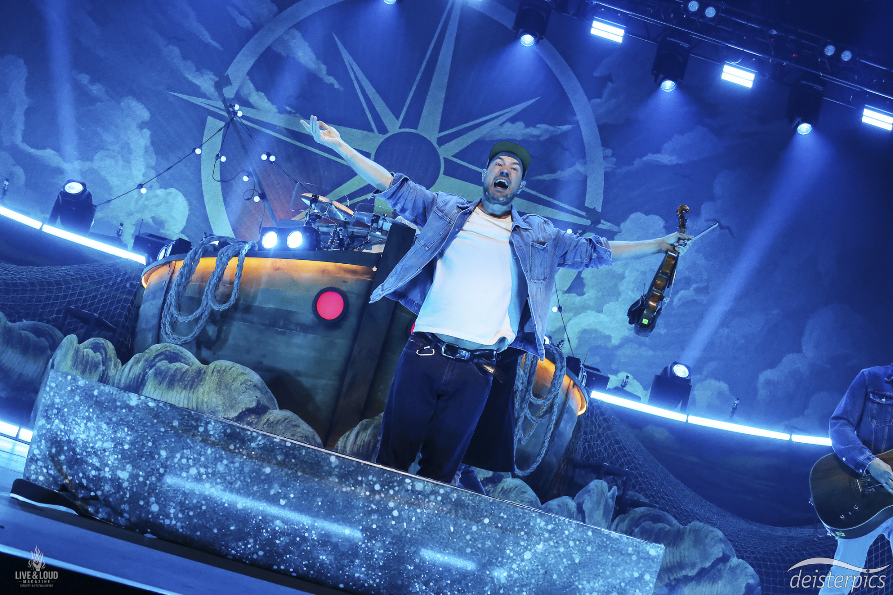 Nach der Umbaupause bleibt die Bühne zunächst verdeckt. Kein schneller Effekt, sondern ein ruhiger Aufbau. Geräusche von Möwen und Wellen legen sich über die Halle und setzen das erste inhaltliche Signal.