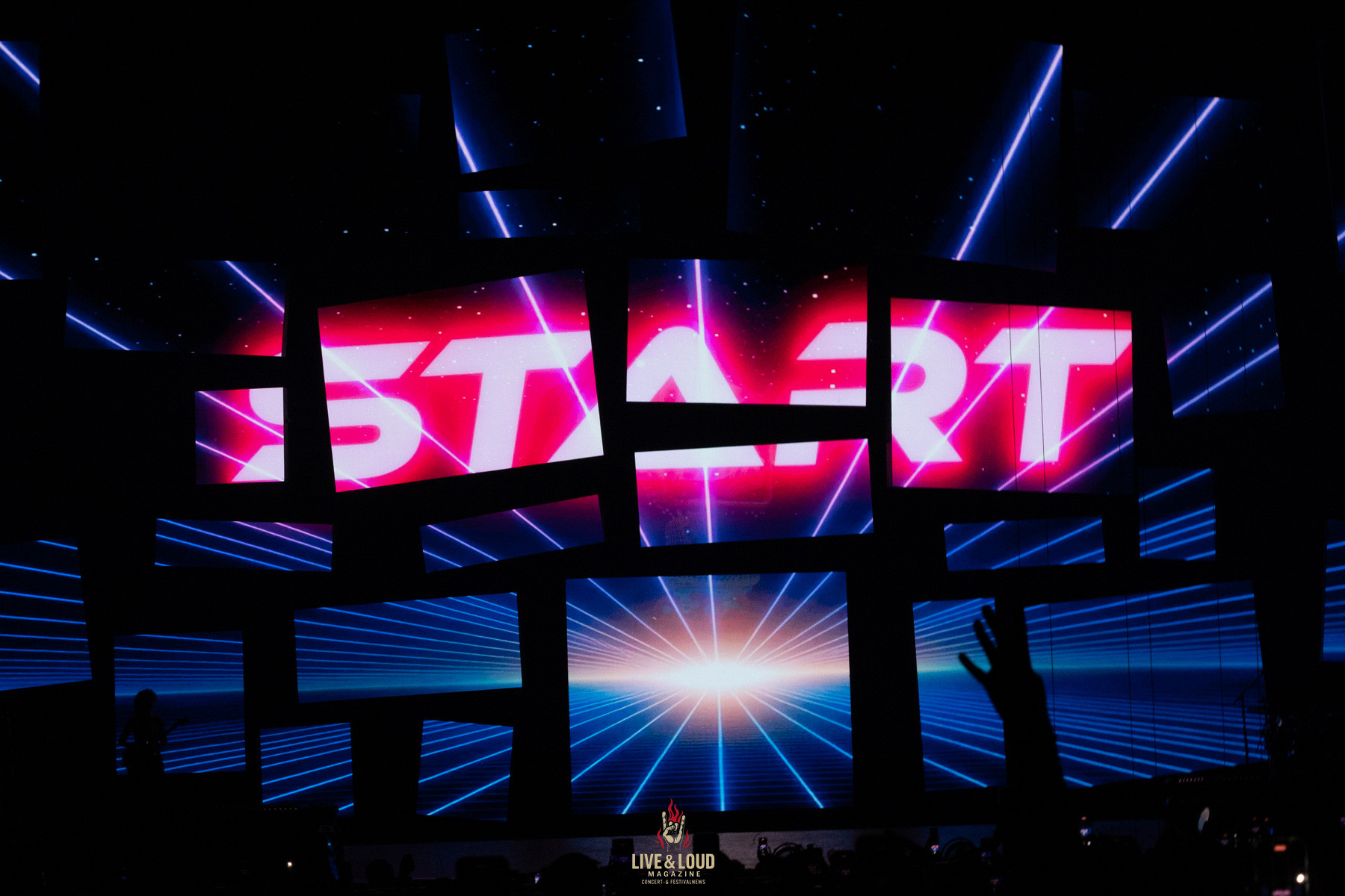 Der erste Blick auf die Bühne genügt, um zu erkennen: Das wird kein gewöhnliches Popkonzert. Zwei geschwungene Laufstege bilden ein doppeltes Unendlichkeitszeichen – Symbol der Tour, Sinnbild eines Popuniversums ohne Anfang und Ende. Riesige LED-Wände, Laserkanonen, 3D-Projektionen und Roboterarme verwandeln die Arena in eine Mischung aus Videospiel, Filmset und digitalem Traum.