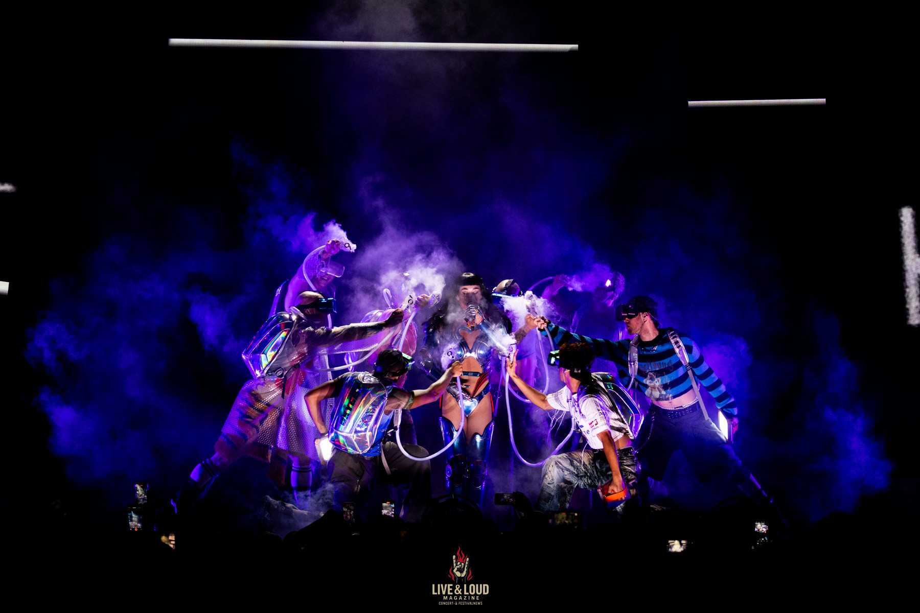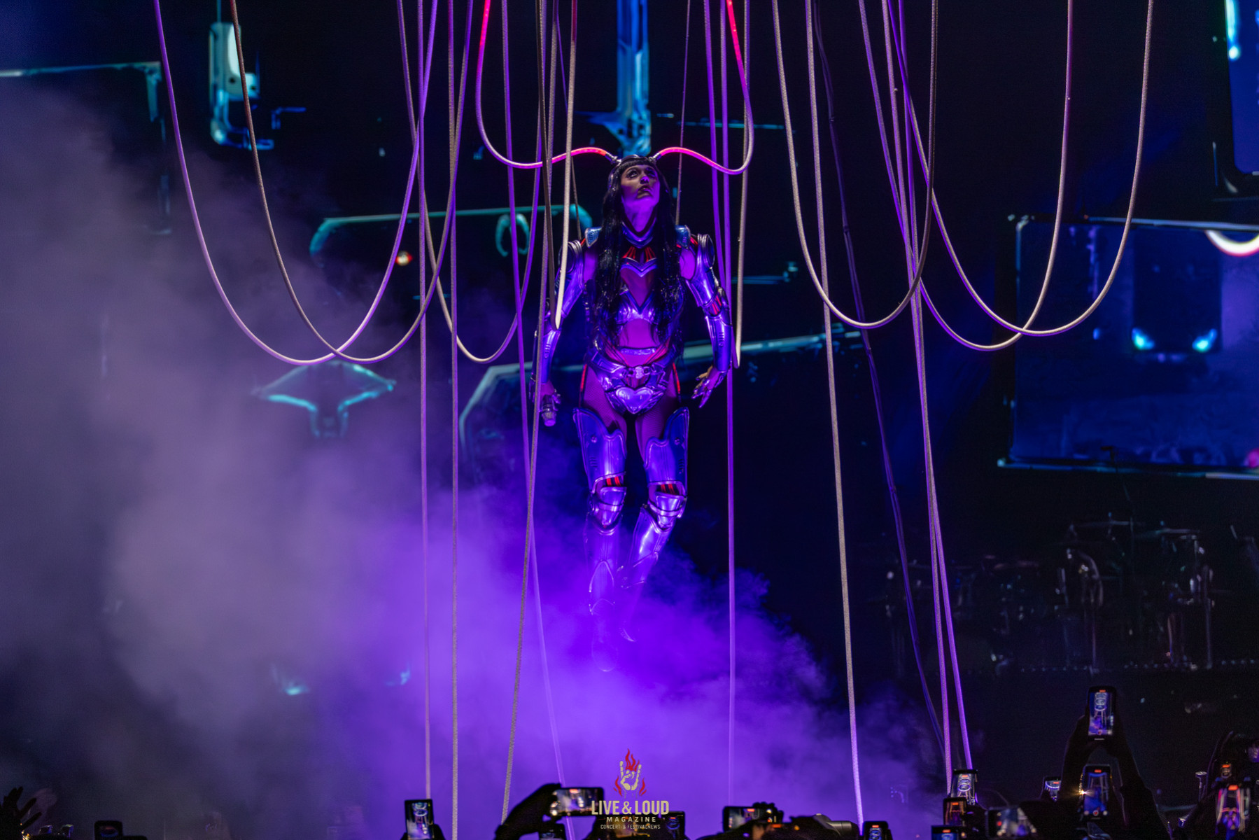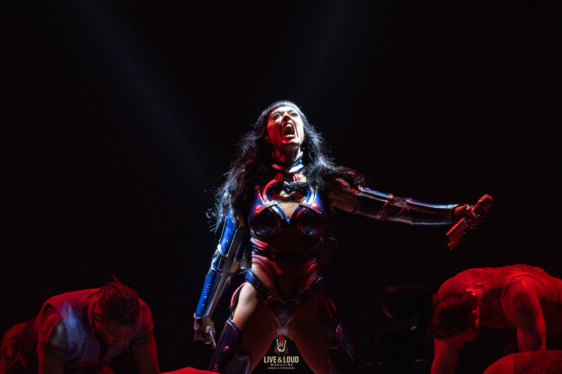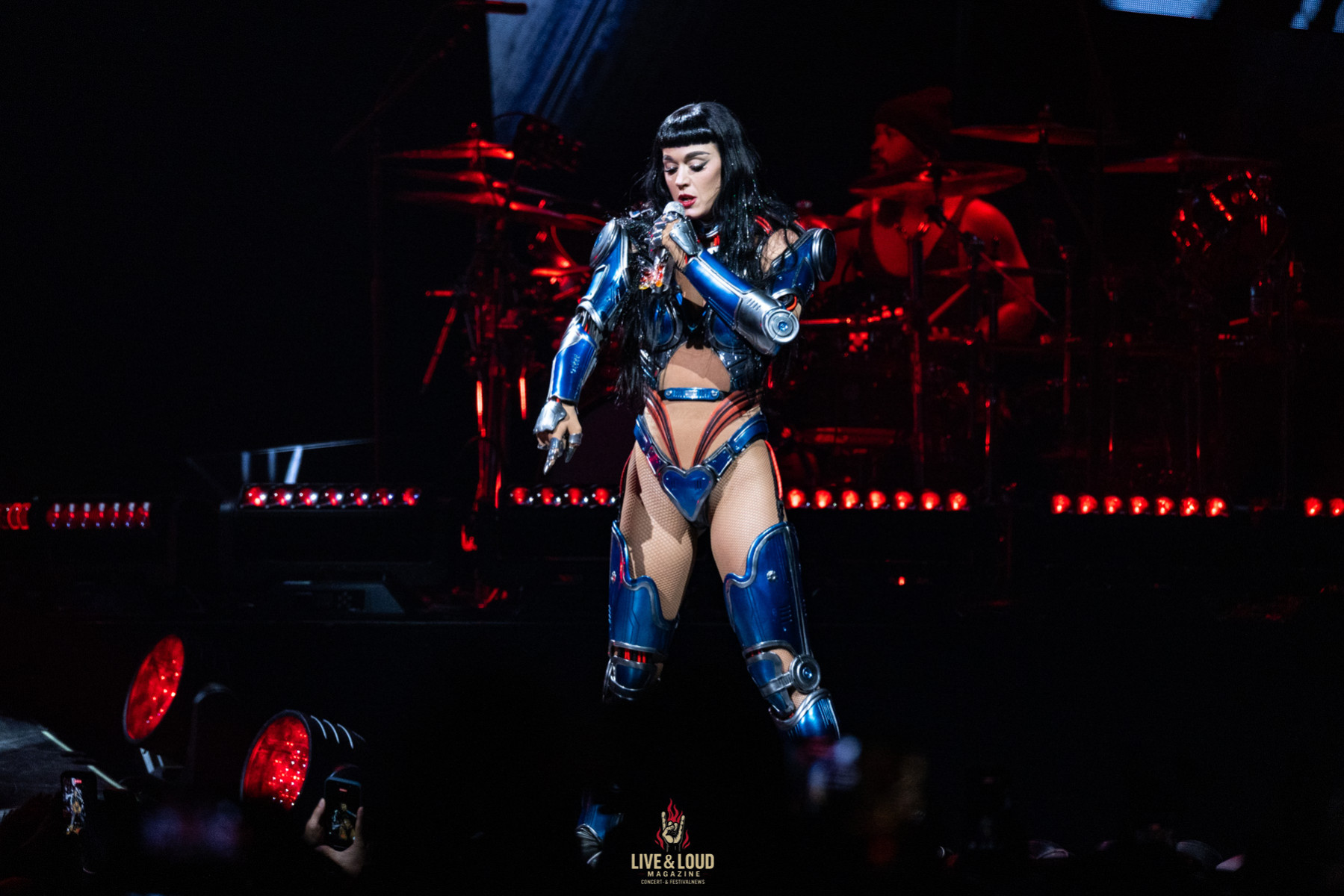 Im letzten Drittel zieht die Show noch einmal alle Register. E.T., Part of Me und Rise verwandeln die ZAG Arena in ein digitales Schlachtfeld. Feuerfontänen schießen aus der Bühne, Roboterarme greifen in den Raum, Laser tanzen über die Köpfe des Publikums.